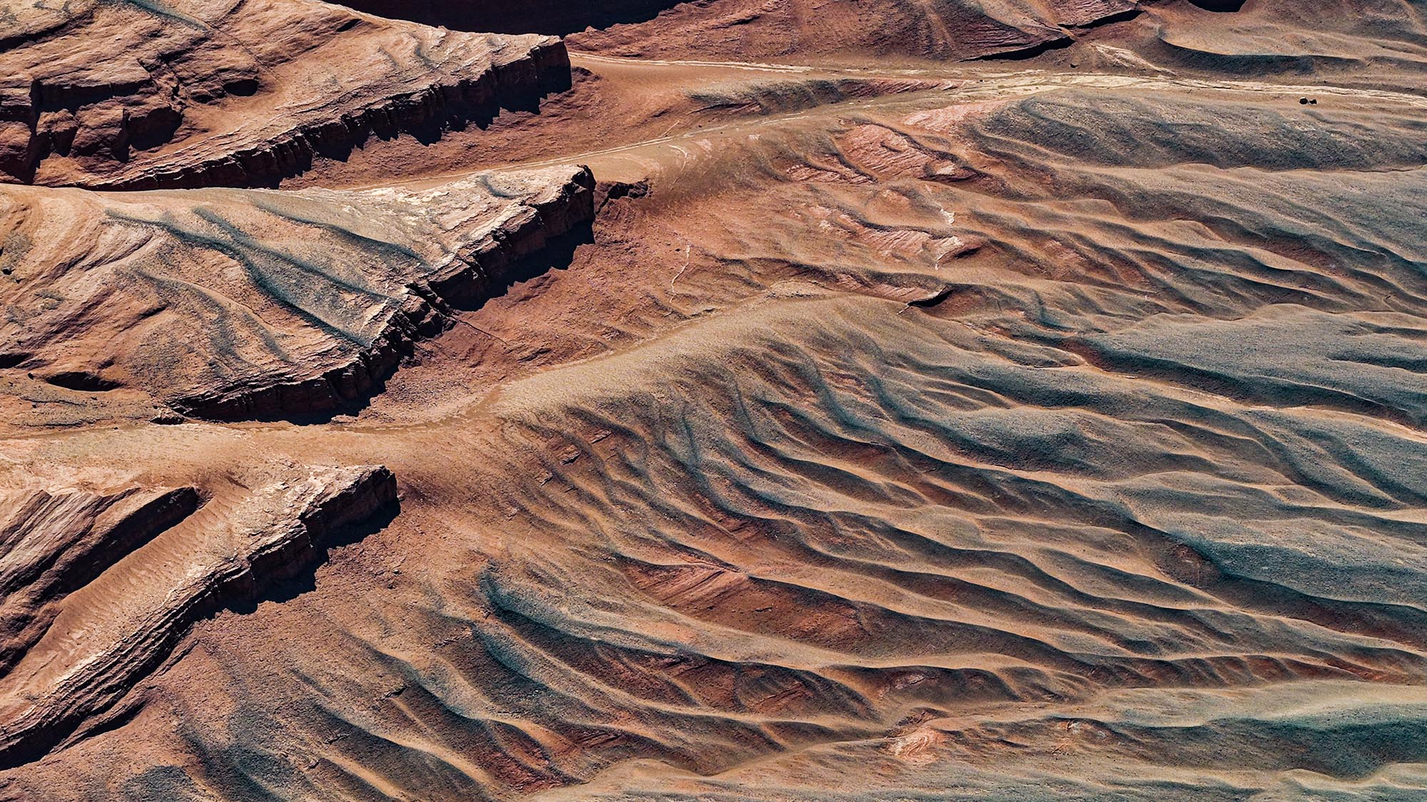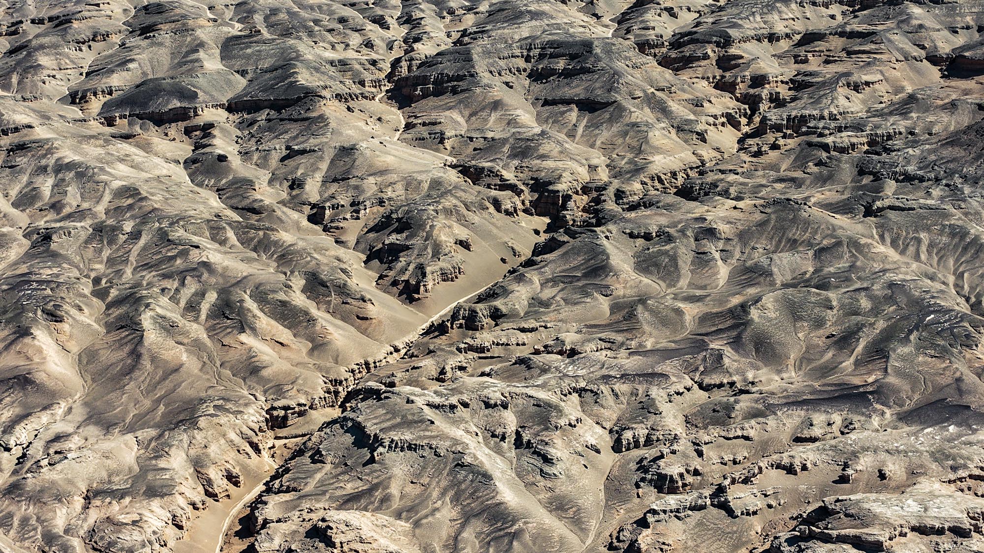 空中俯瞰托克逊雅丹地貌群,逾两千座土丘以奇崛峥嵘之势拔地而起,其鬼斧神工的形态浸染着强烈的魔幻色彩,宛若戈壁宫殿群,迸发出摄人心魄的视觉冲击。