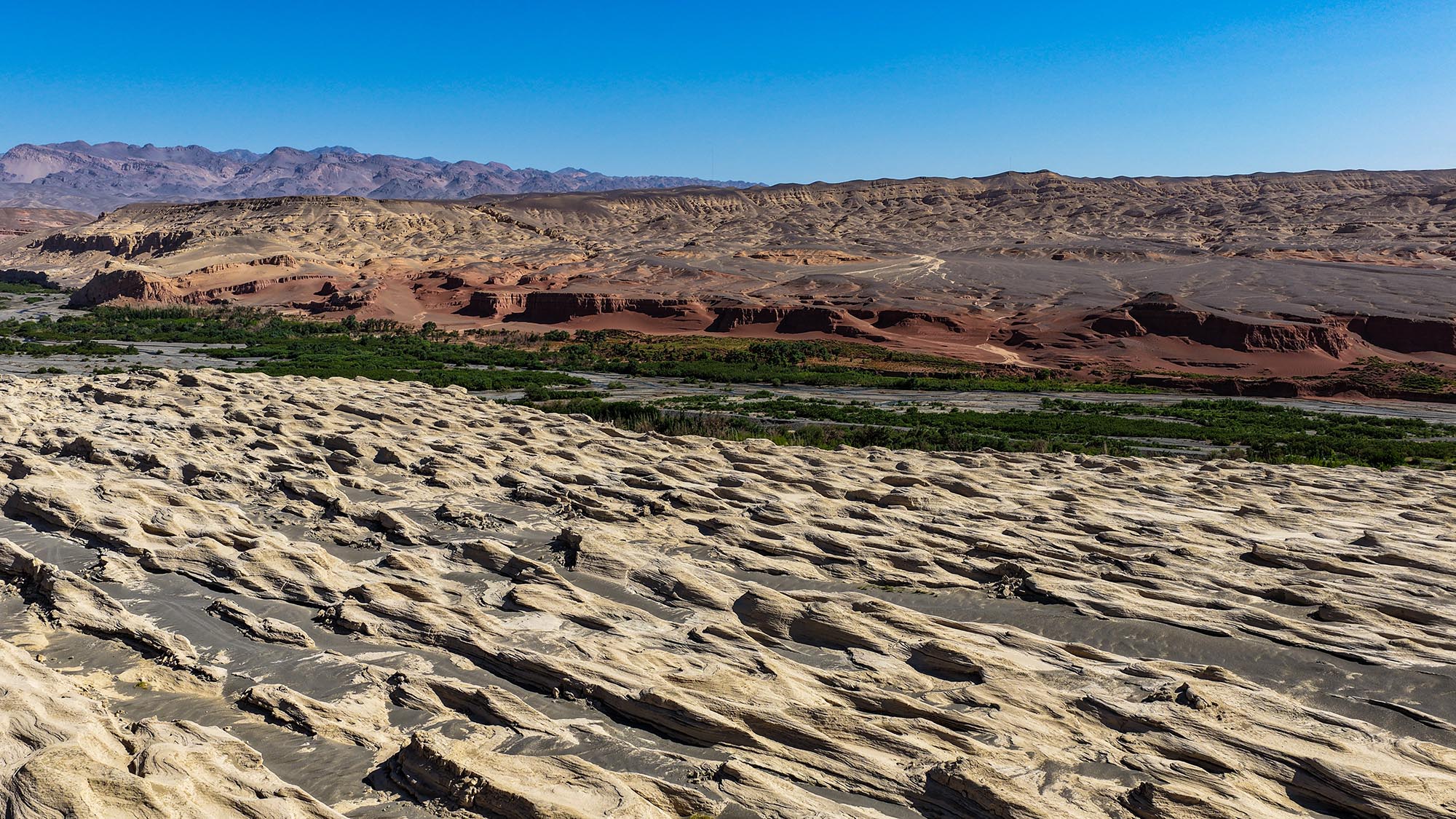 托克逊县雅丹地貌呈南北走向,紧挨白杨河与天山红河谷
