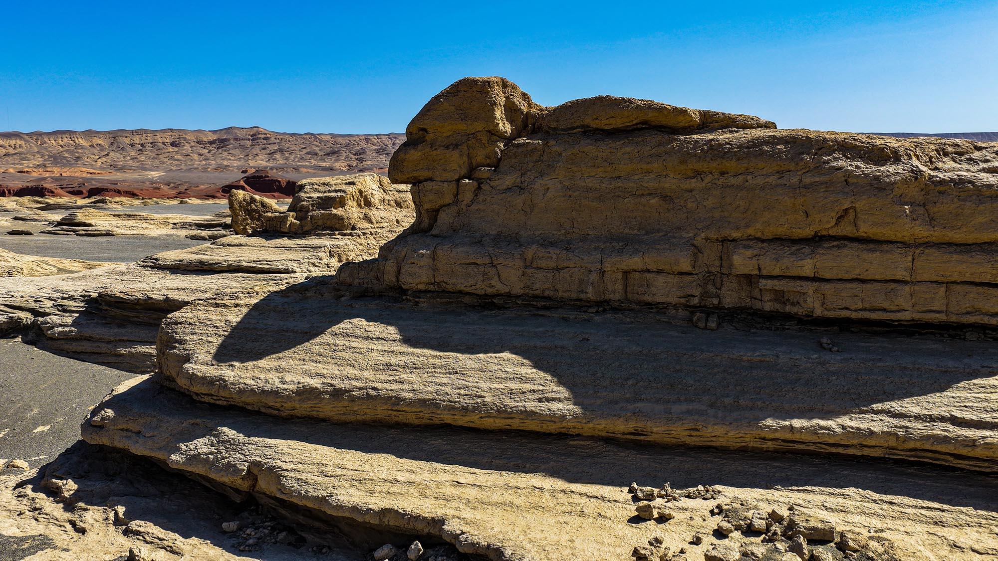 经过两次大的地壳变动,湖泊变成了间夹着砂岩和泥板岩的陆地瀚海,地质学上称它为“戈壁台地”