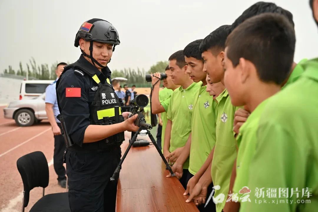 英吉沙县公安局将高精尖警务装备带进校园,让孩子们大开眼界。英吉沙县公安局供图