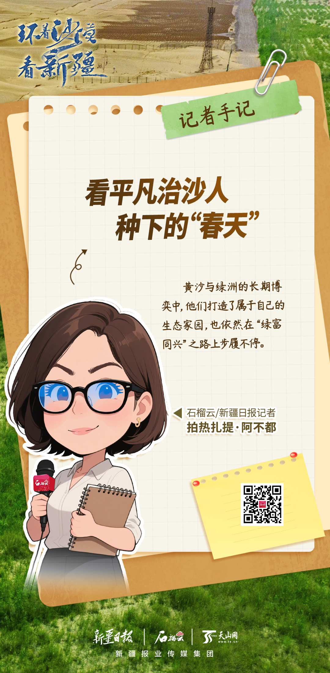 手绘海报 | 记者手记:看平凡治沙人种下的“春天”