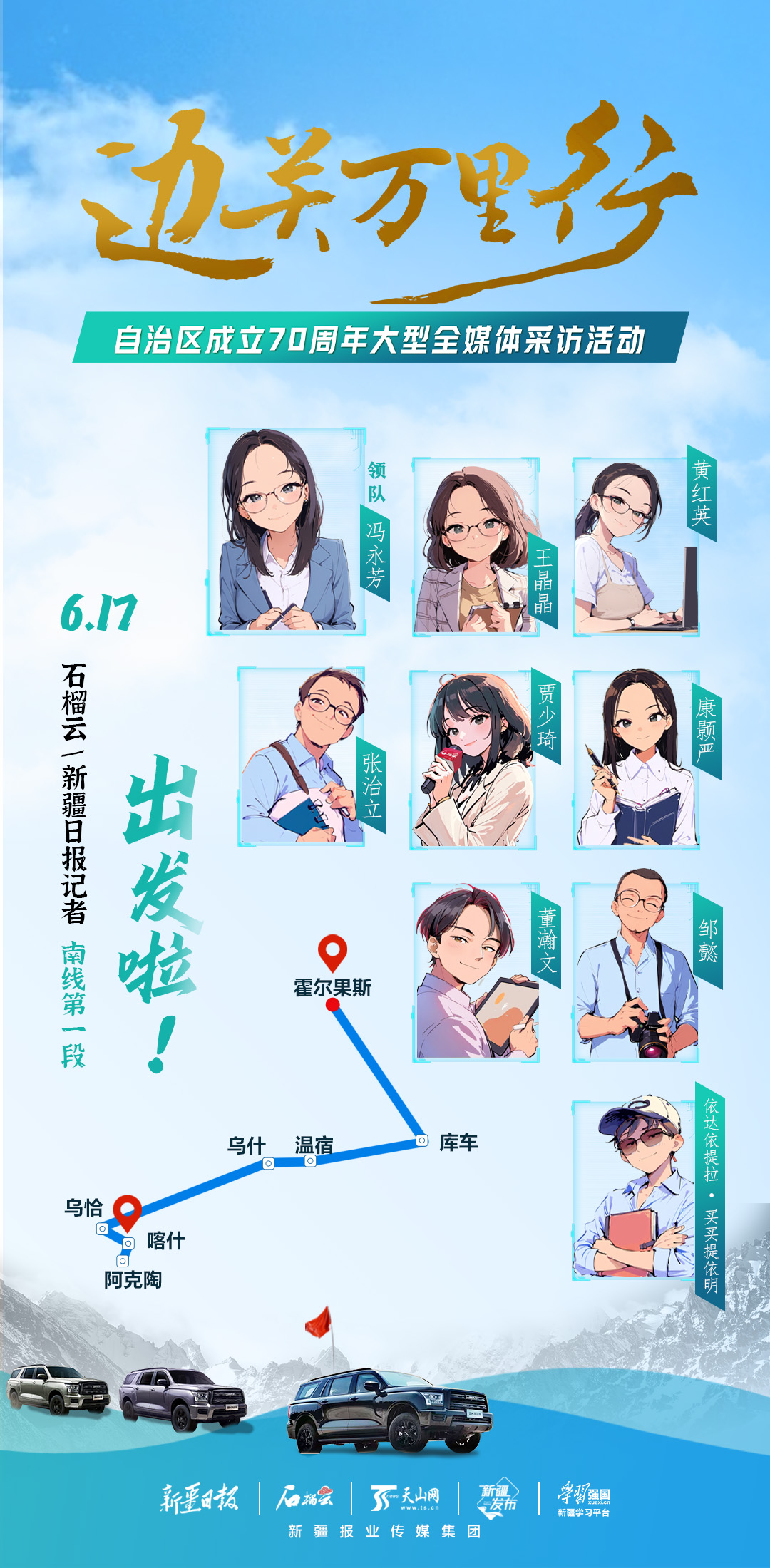 石榴云/新疆日报记者南线第一段出发啦!