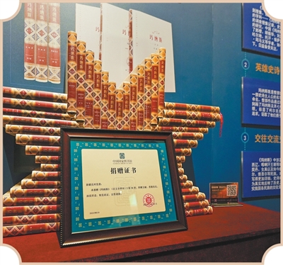 克孜勒苏柯尔克孜自治州博物馆展示的《玛纳斯》(汉文全译本)。新华社记者 徐宏岩摄