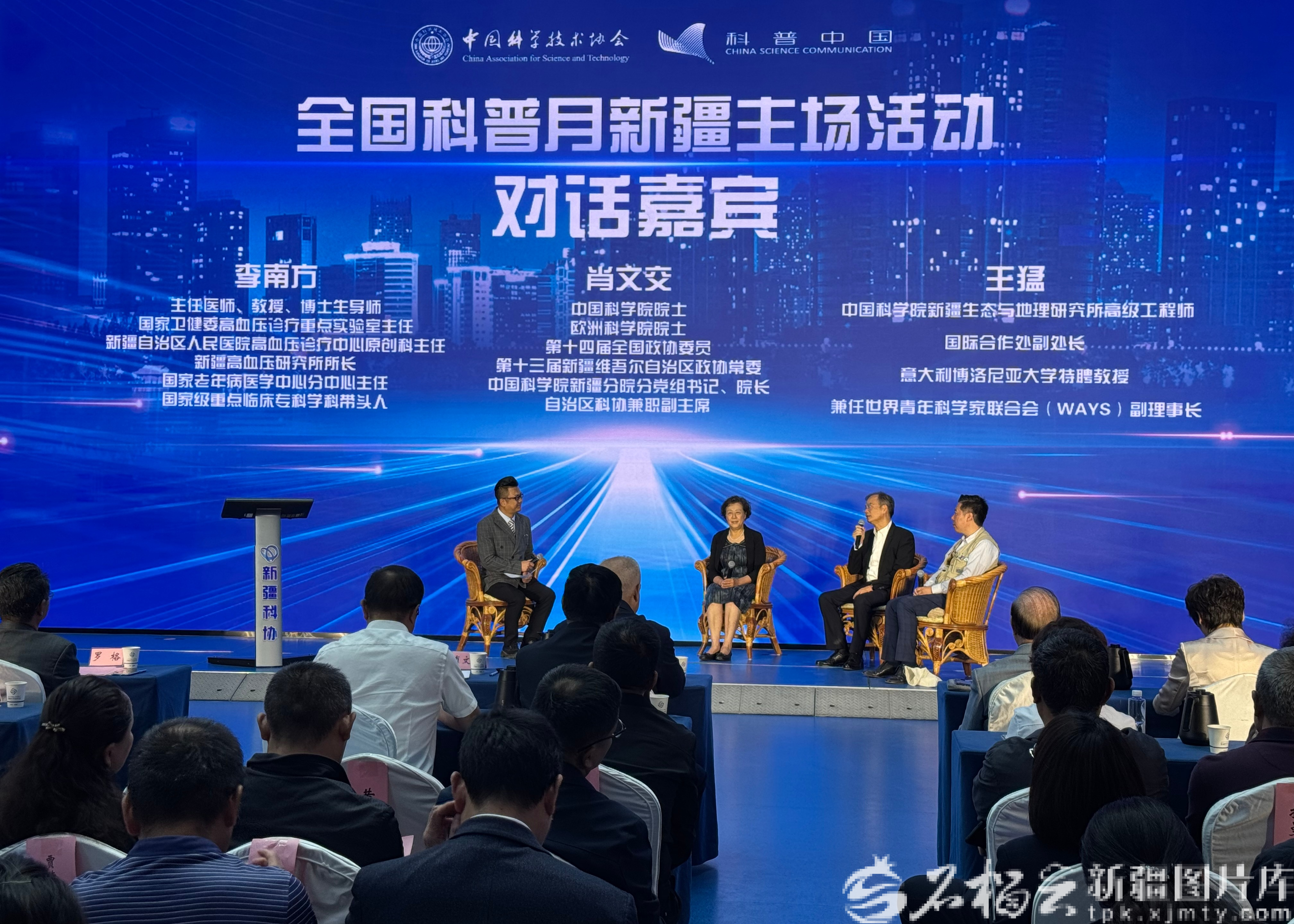 “院士面对面·青春对话科学家”环节成为现场亮点。中国科学院院士肖文交、自治区人民医院高血压诊疗中心原创科主任李南方、中国科学院新疆生态与地理研究所高级工程师王猛三位科技工作者与青少年围绕科学精神与科学家精神的传承展开深入对话。