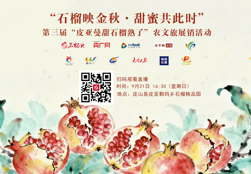 石榴云/新疆日报讯(记者 管梦颖 邓平报道)9月21日,“石榴映金秋·甜蜜共此时”——第三届“皮亚曼甜石榴熟了”农文旅展销活动在和田地区皮山县皮亚勒玛乡开幕。皮亚曼甜石榴“云”上飘香,石榴云同步直播丰收盛况,吸引近20万人次在线观看,助力实现直播订单712笔,销售石榴3560公斤,让“云直播”助推产业发展。