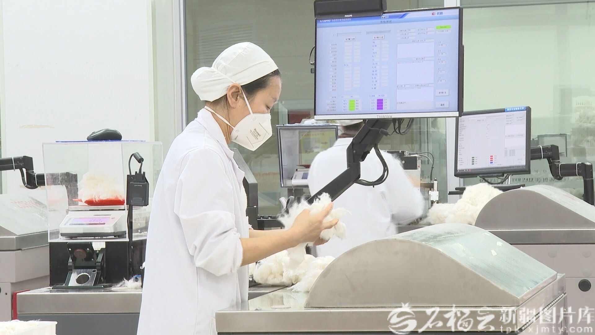 在塔城地区纤维检验所暨中国棉花公证检验乌苏实验室,操作员正在进行样品检测。乌苏融媒体中心供图