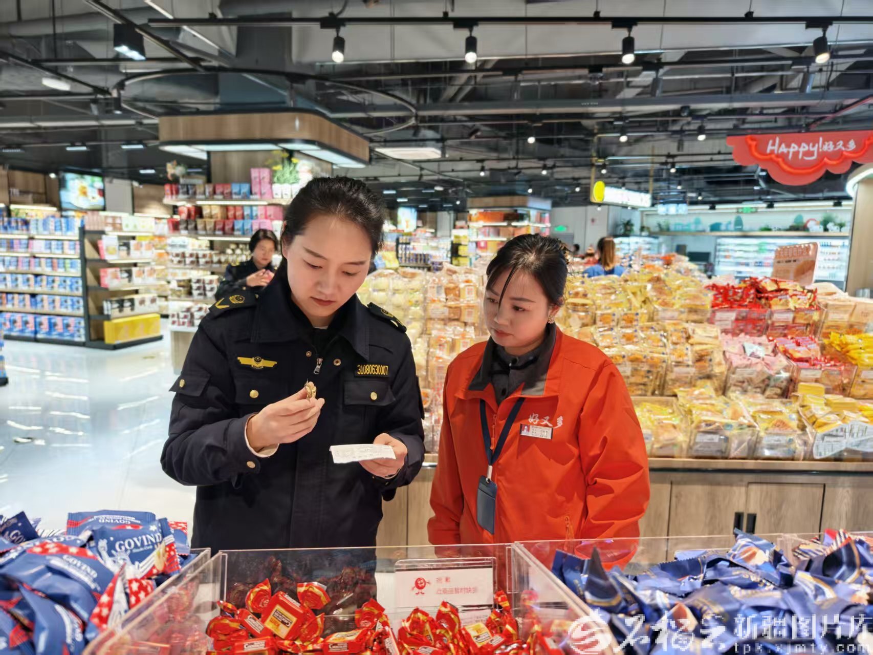 2025年12月31日,阿克苏市市场监督管理局执法人员在好又多超市开展执法检查。陆雪婷摄