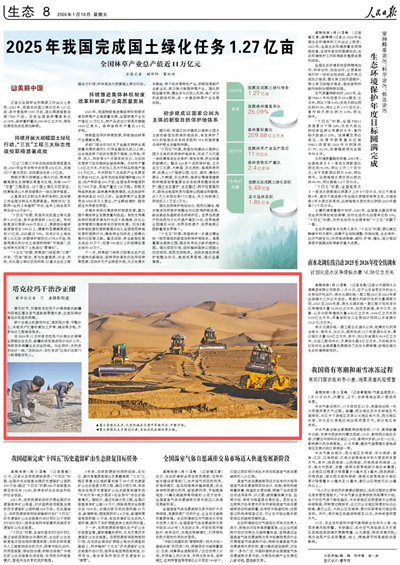 自2024年11月环塔克拉玛干沙漠生态屏障全面锁边合龙后,新疆系统性推进防沙治沙工作,持续筑牢南疆生态安全防线。与此同时,农民来到治沙一线,“农闲治沙、农忙务农”让他们在家门口获得稳定收入。(新华社记者 丁 磊摄影报道)