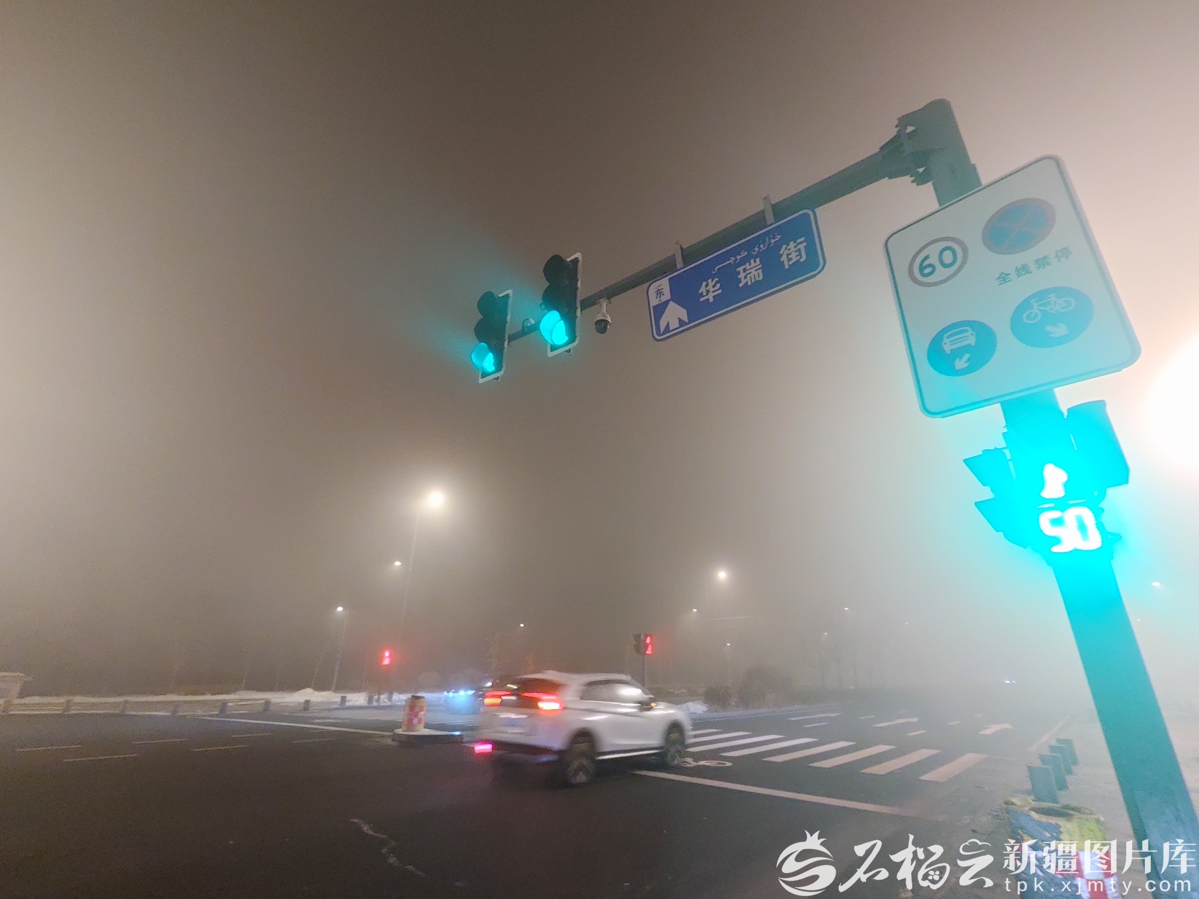 1月29日23时,乌鲁木齐市水磨沟区大雾,能见度在200米左右。石榴云/新疆日报记者 秦鹏摄