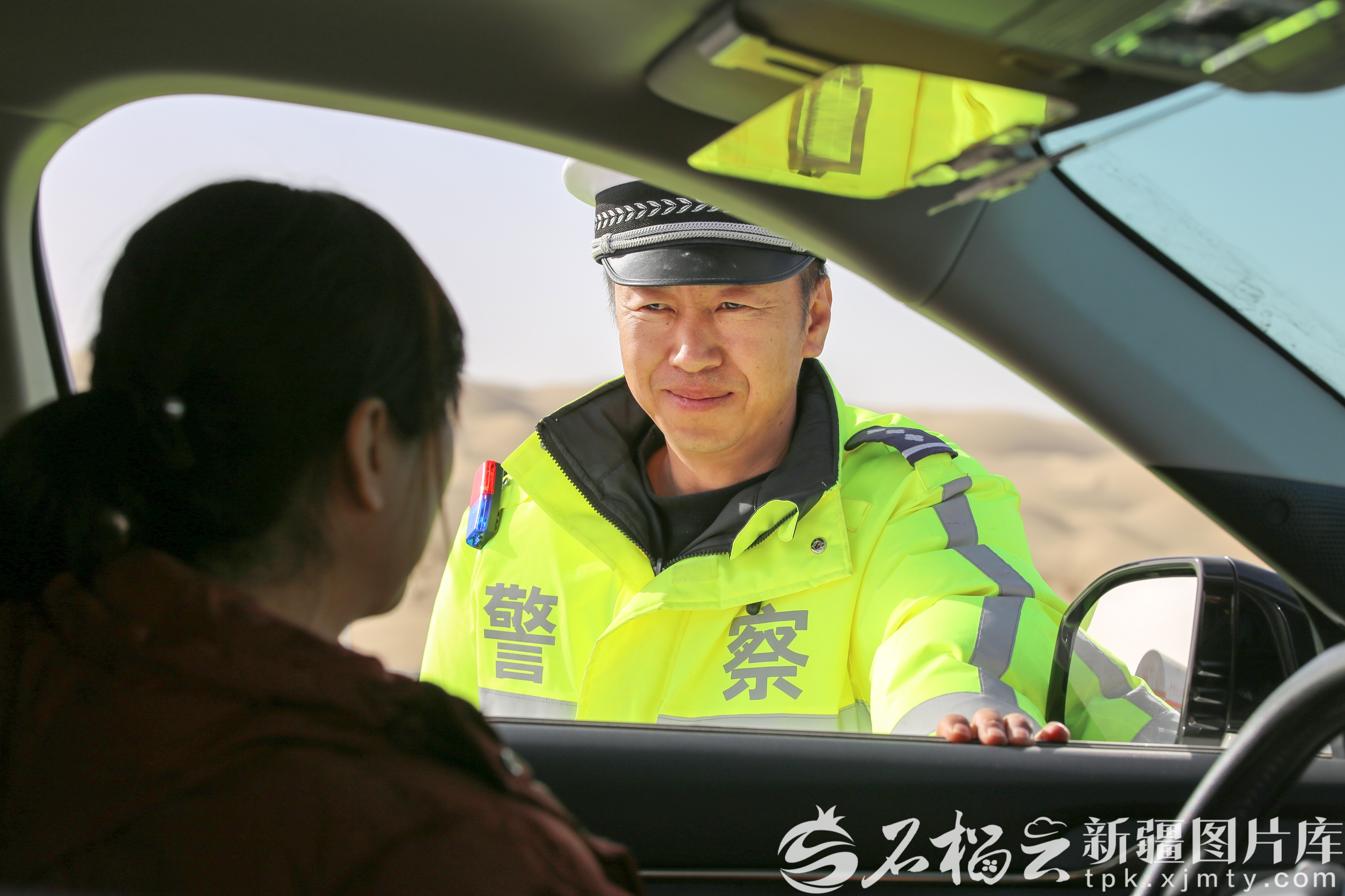 车行在起伏的沙漠公路上,连绵的沙丘随车轮缓缓向后退去。两个多小时后,我们抵达执勤点,便看到几名队员正围着一辆货车开展检查,司机师傅搓着冻得发红的手,一个劲地道谢:“多亏你们细心,我这轮胎慢漏气,真在沙漠里抛锚,前不着村后不着店,可就麻烦大了!”