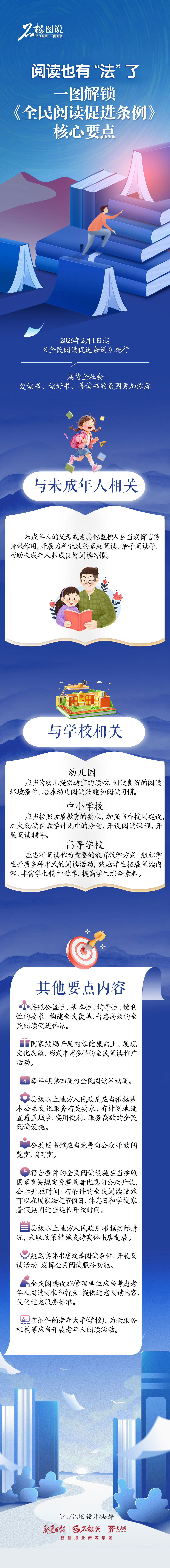 2026年2月1日起,《全民阅读促进条例》施行,期待全社会爱读书、读好书、善读书的氛围更加浓厚。