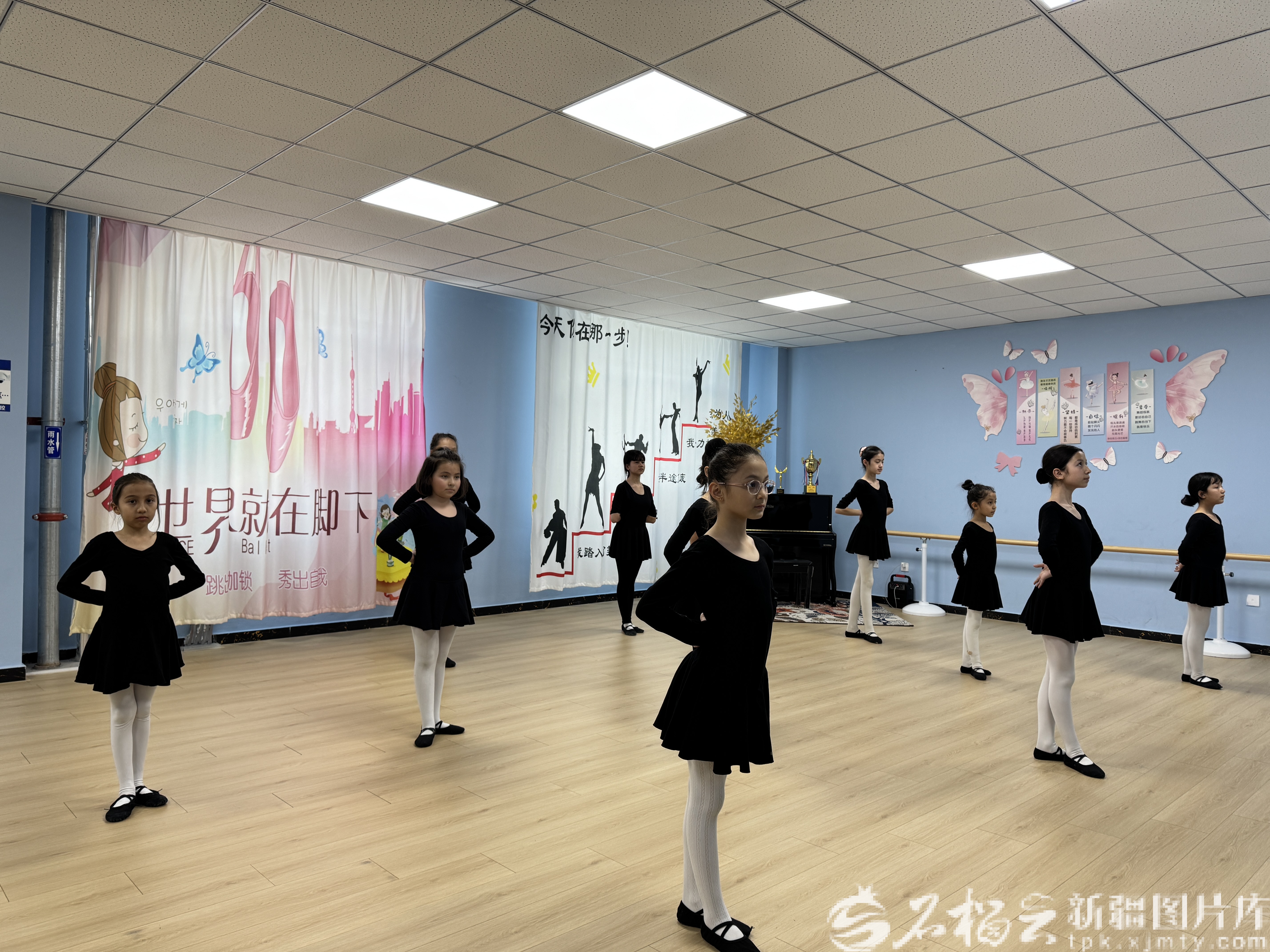 乌鲁木齐市天山区赛马场街道赛马场西社区邻里中心的舞蹈瑜伽室,孩子们在跳舞。石榴云/新疆日报记者 张冬梅摄