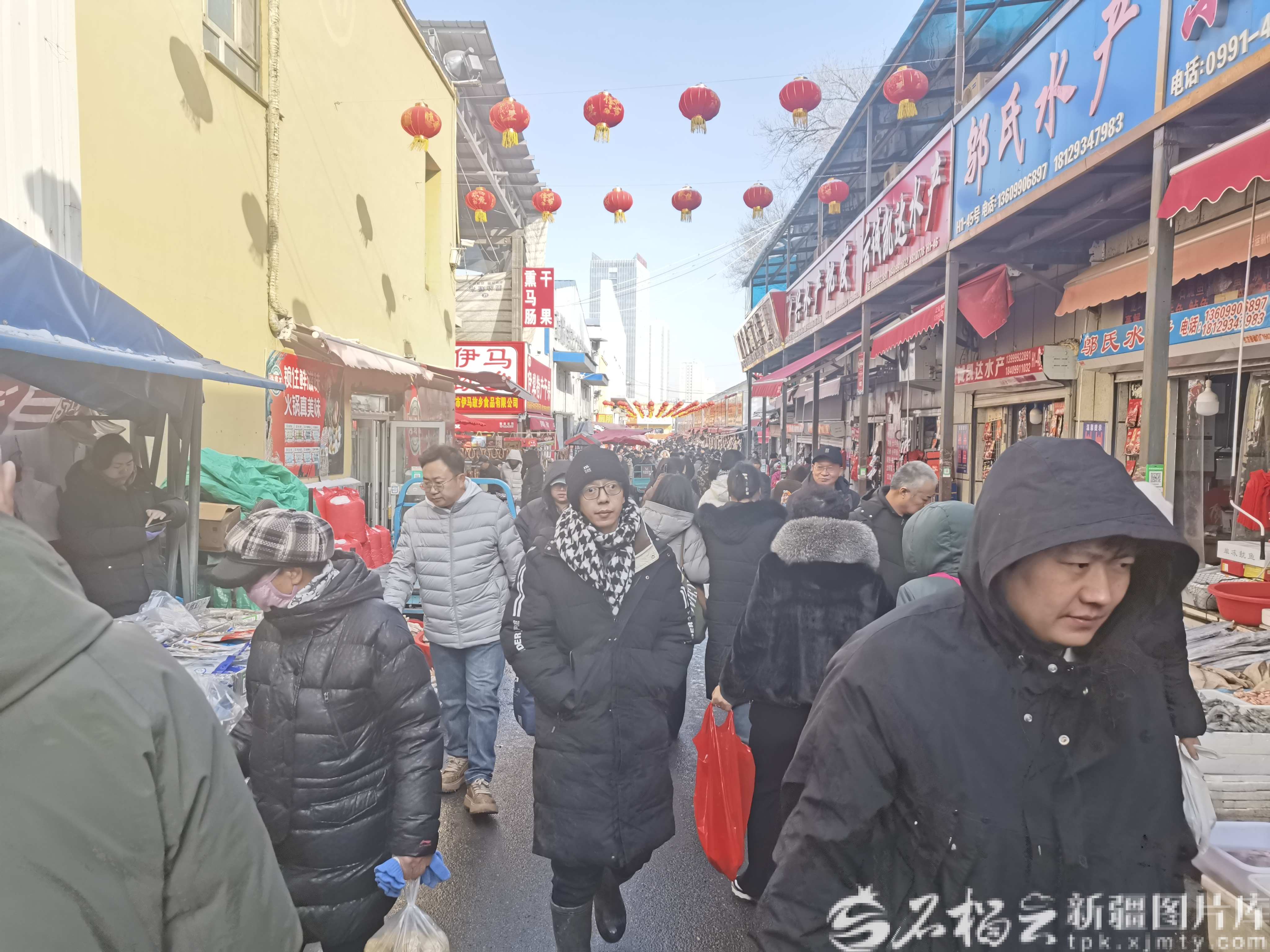 2月9日,乌鲁木齐市新北园春市场内客流如织。石榴云/新疆日报记者 高峰摄