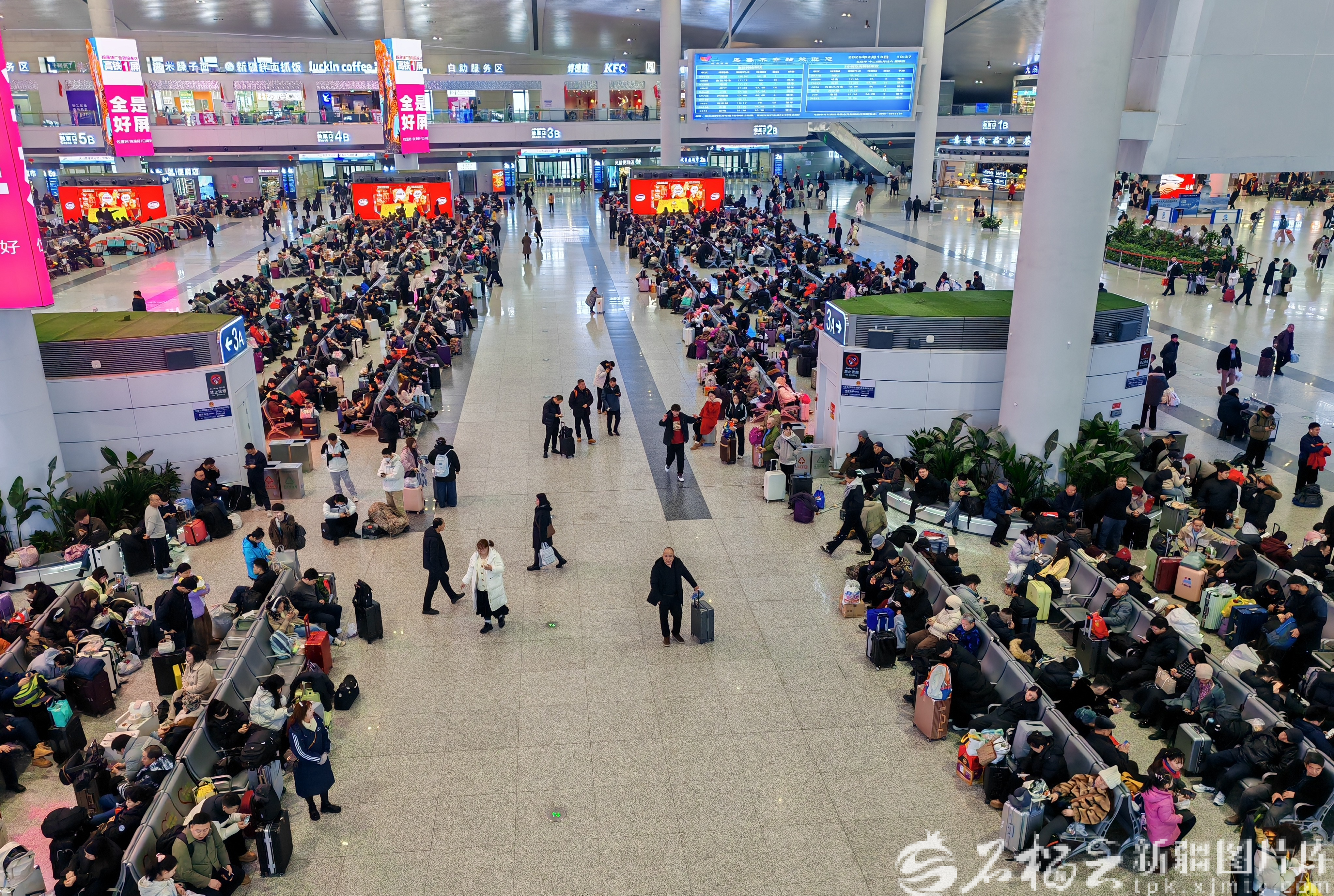 2月13日,旅客在乌鲁木齐站候车。石榴云/新疆日报记者 逯风暴摄