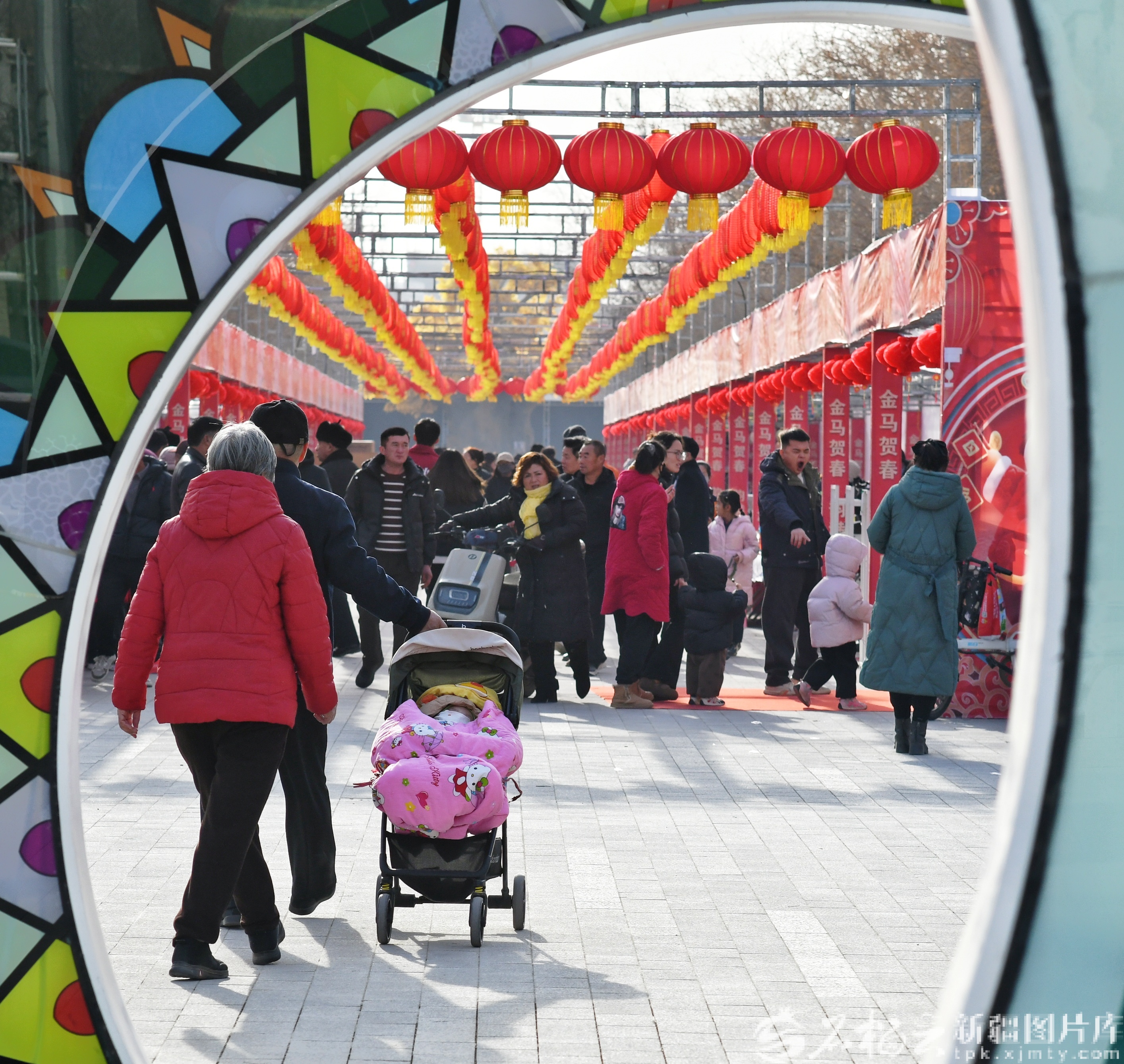 2月1日下午,库尔勒年货节火热开幕,市民在年货现场游逛购物。石榴云/新疆日报记者 王立华摄