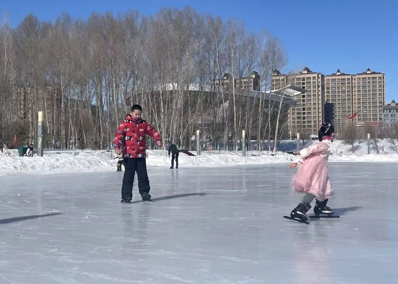 △2月18日,在阿勒泰市全季体育公园,市民及游客以运动开启新年,传递着新春的快乐与活力。