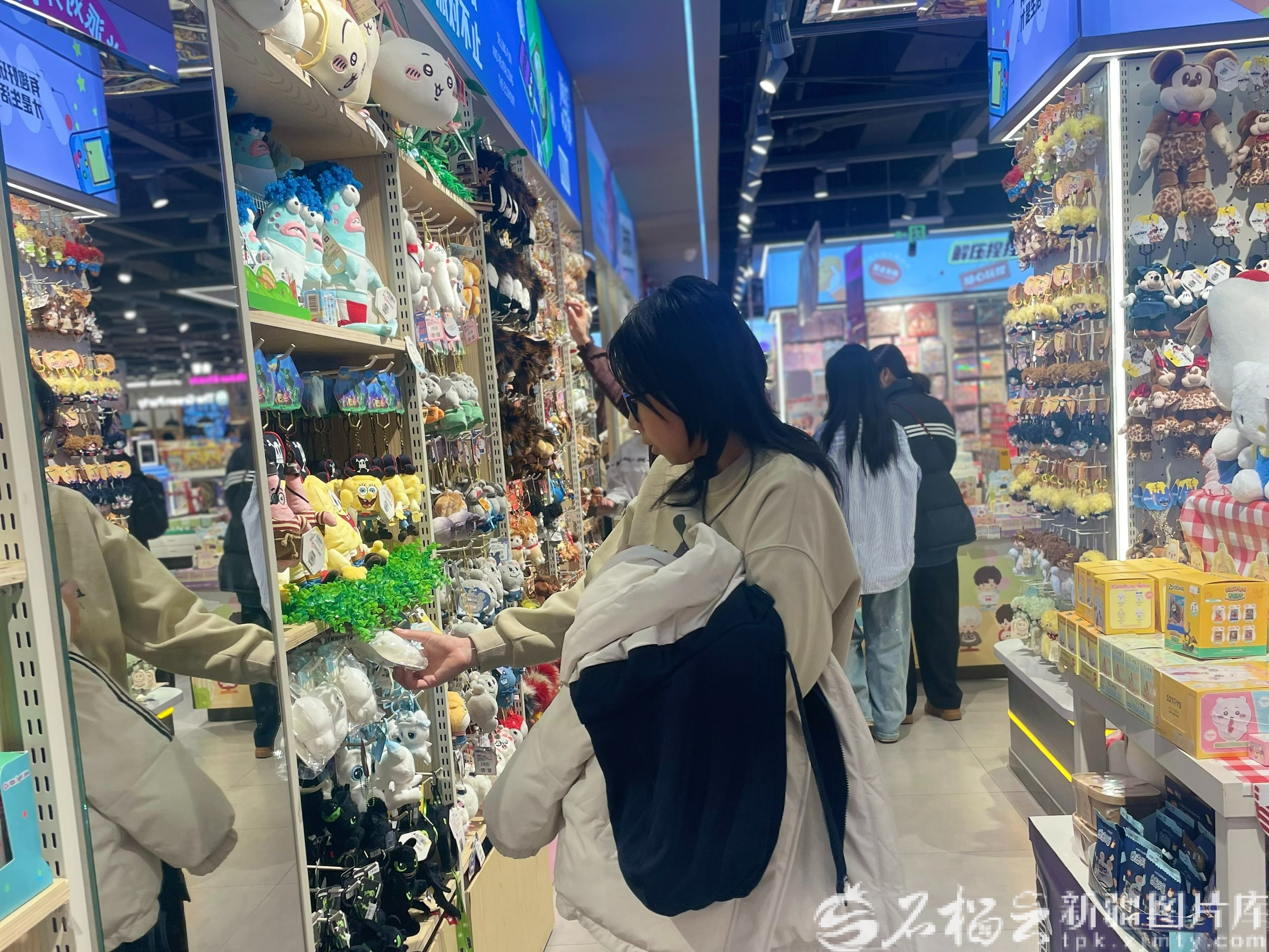 2月21日,在乌鲁木齐CCMALL时代广场一家潮玩店,市民在选购潮流物品。石榴云/新疆日报记者 索蓉芝摄