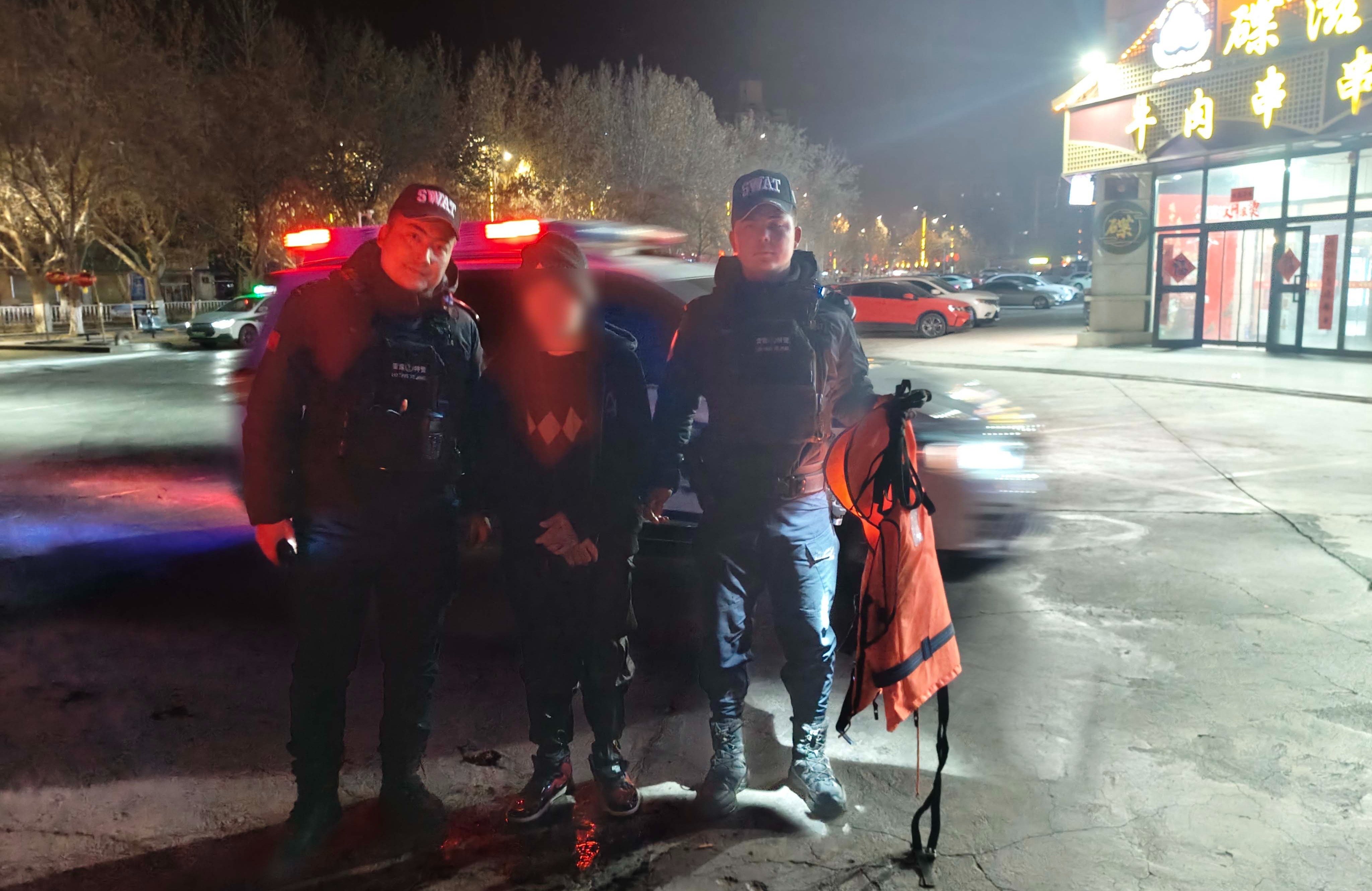 2月16日凌晨2时25分,库车市公安局接到紧急警情:辖区一处湖水的冰面破裂,一名男子落水。特警大队执勤民警火速赶到现场,发现一名年轻男子正在水中不断挣扎,周边冰层薄脆,随时可能再次坍塌。