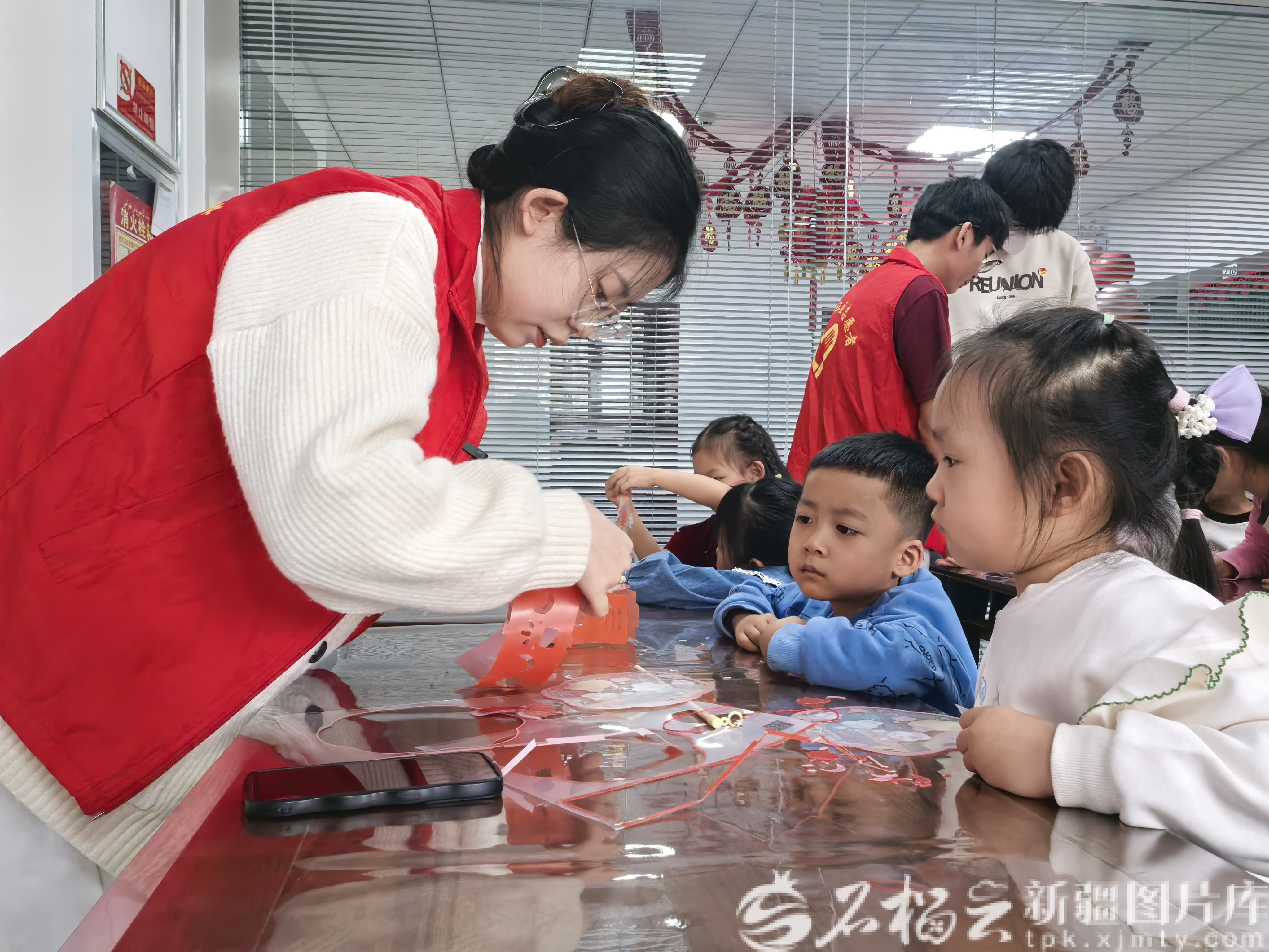 课堂上,大学生志愿者手把手耐心地教孩子们完成手工制作。石榴云/新疆日报记者 马蓓摄
