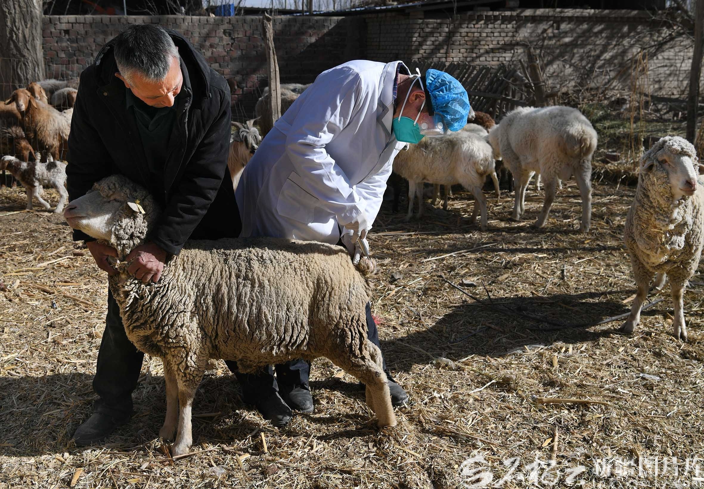 在伊敏托乎提·麦提图尔荪家,乡畜牧站工作人员上门给羊打疫苗。石榴云/新疆日报记者 拍热扎提·阿不都摄
