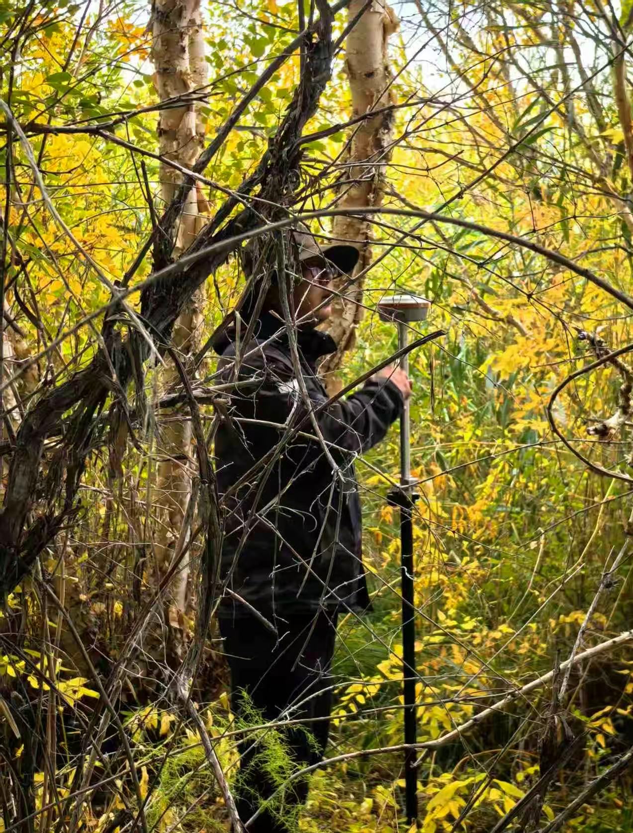 调查人员正在用RTK测量小叶桦面积。图片由孙刚提供