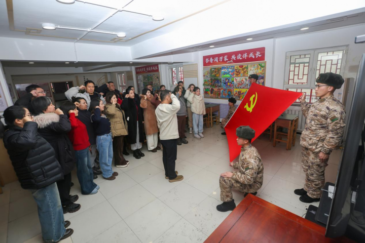 官兵和社区干部群众一起向党旗宣誓