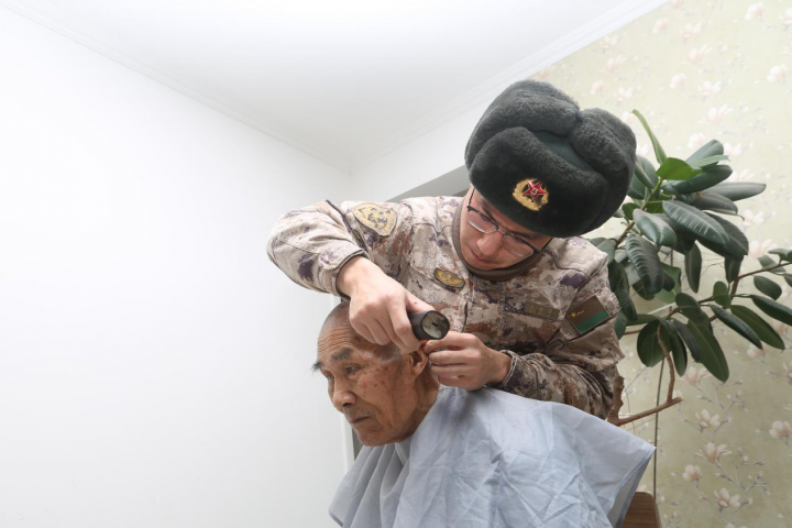 得知社区部分老年居民行动不便,官兵们主动组建上门服务小队。来到居民家中,官兵们先与老人促膝长谈,唠起家常里短,关切询问饮食起居和身体状况,倾听老人的心声诉求。理发时,战士们拿出自带的理发工具,小心翼翼地梳理、修剪,根据老人的脸型和喜好调整发型,动作轻柔又认真。理完发后,还顺手帮老人擦拭家具、打扫庭院,把杂乱的房间整理得井井有条,临走时反复叮嘱老人注意保暖、保重身体,让老人真切感受到亲人般的温暖。
