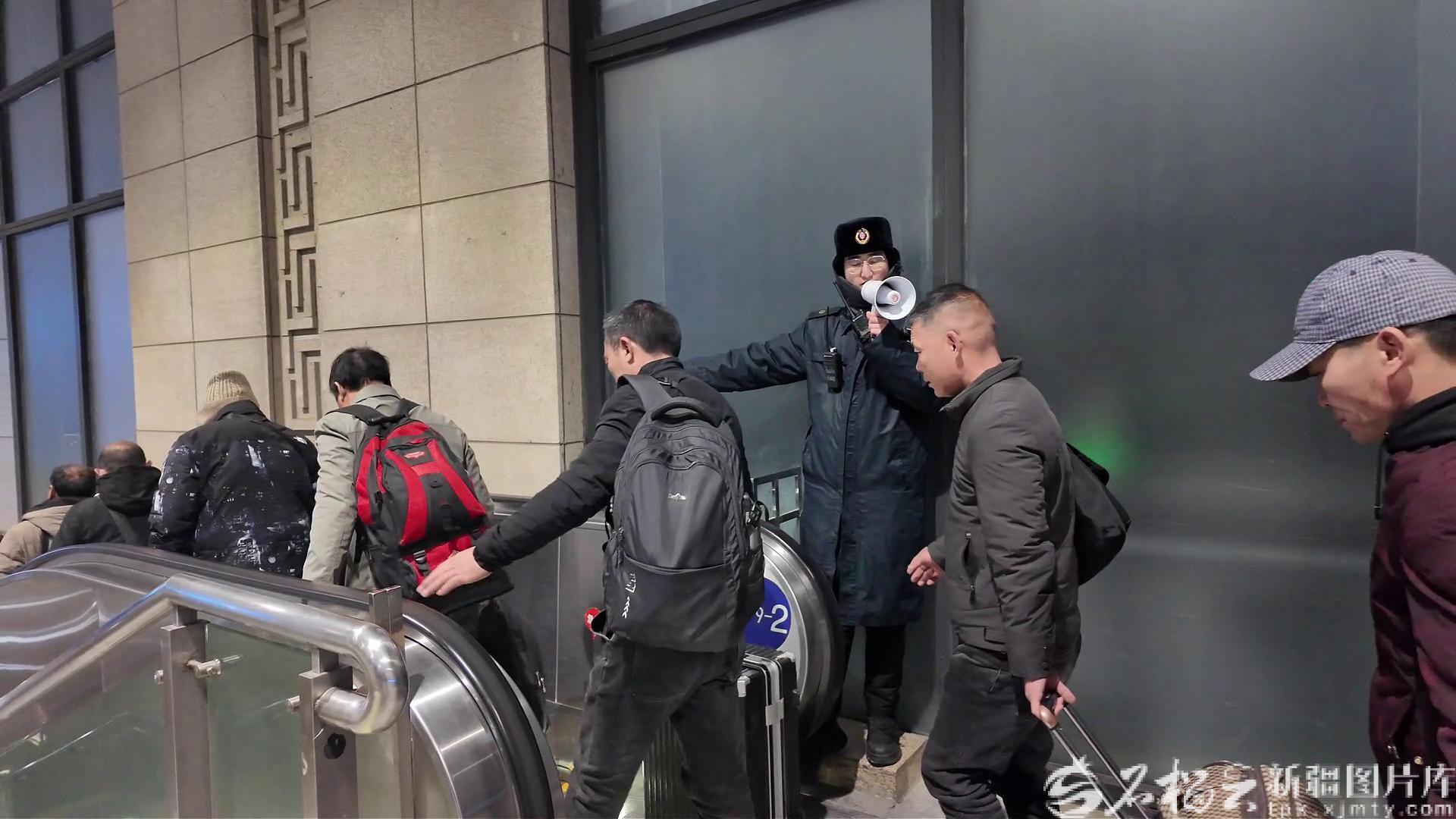 乌鲁木齐站出站口处,引导牌清晰醒目,该站开辟返岗人员绿色通道,铁地同步做好接驳保障,实现下火车、上接驳、零停留无缝衔接,高效打通务工人员返岗“最后一公里”。