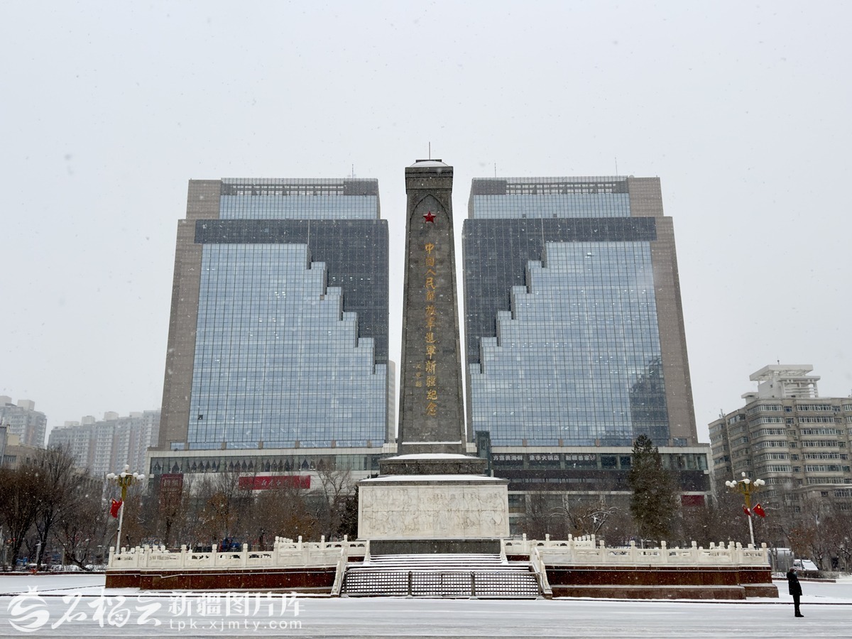 一个穿红羽绒服的小女孩在广场上跑来跑去,伸手接雪花,化了,再接,又化。她的妈妈举着手机追着拍:“发个朋友圈,让老家的亲戚看看,乌鲁木齐的雪多好看。”