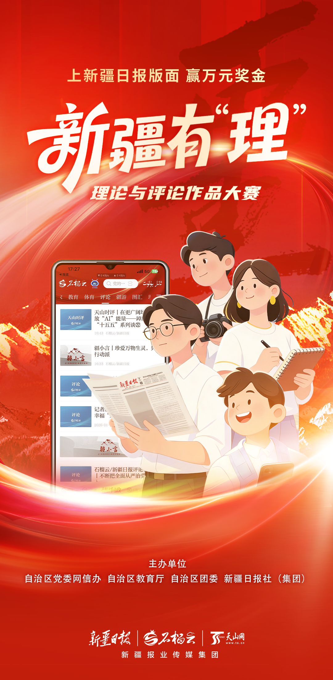 优秀理论、评论文章,短视频将在《新疆日报》理论版、时评版,石榴云客户端理论频道、评论频道以及《今日新疆》杂志发布。