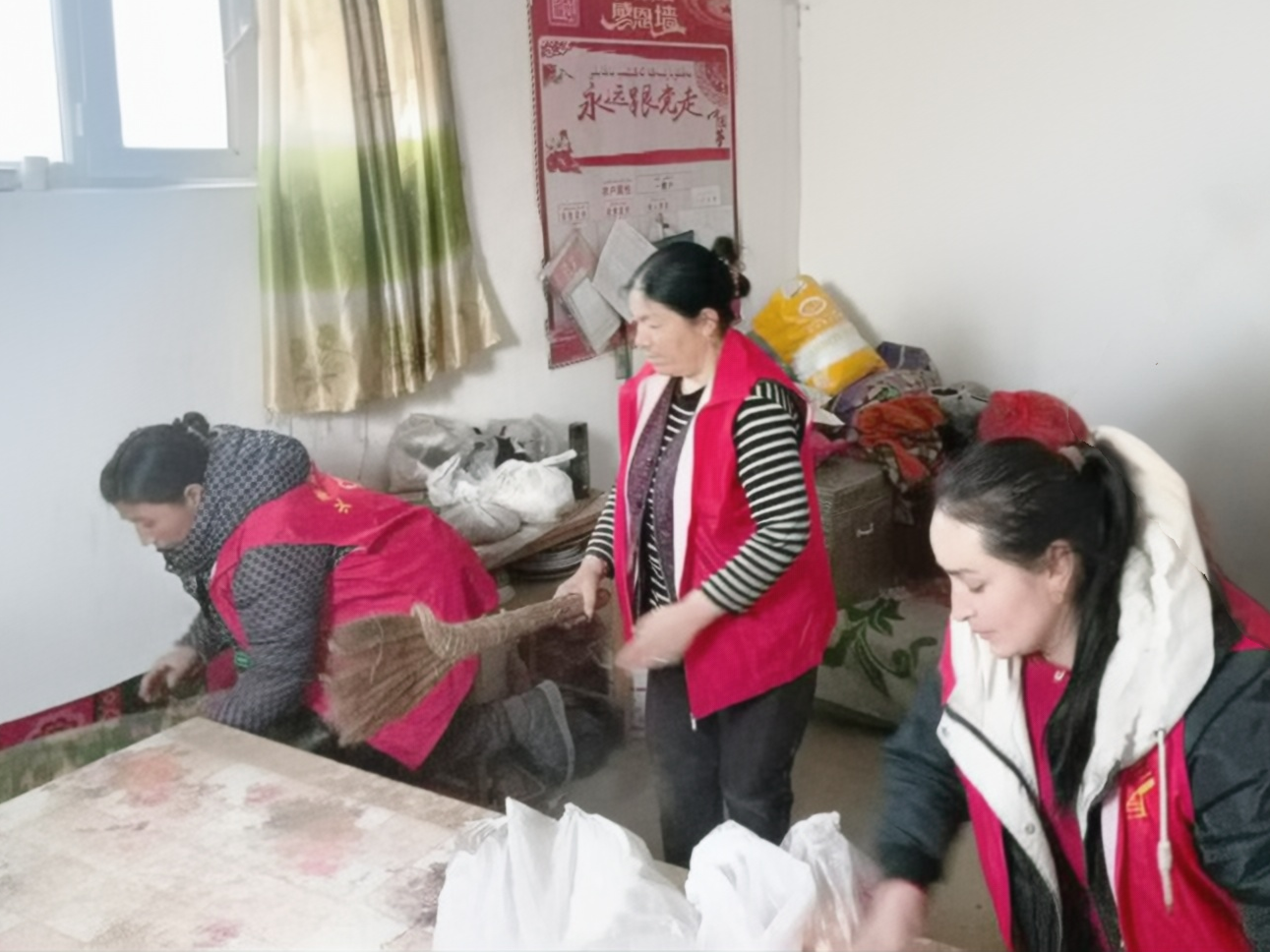 3月5日,和田县拉依喀乡库木艾日克村志愿者们带着真诚与热情,分组来到高龄老人家中,拿起扫帚、抹布等工具,有条不紊地打扫卫生。
