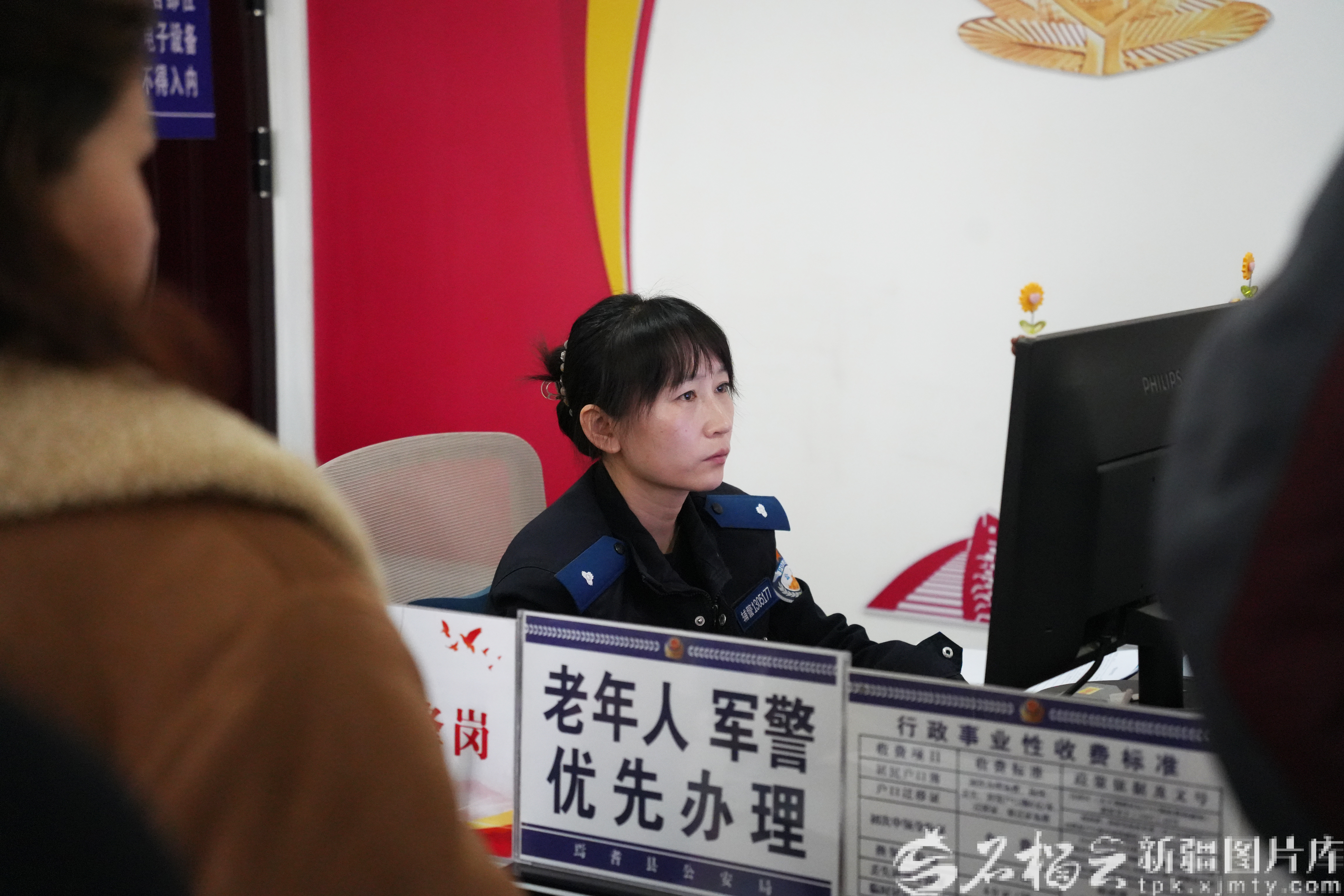 焉耆回族自治县公安局永宁镇派出所户籍辅警为群众办理业务。冶凡摄