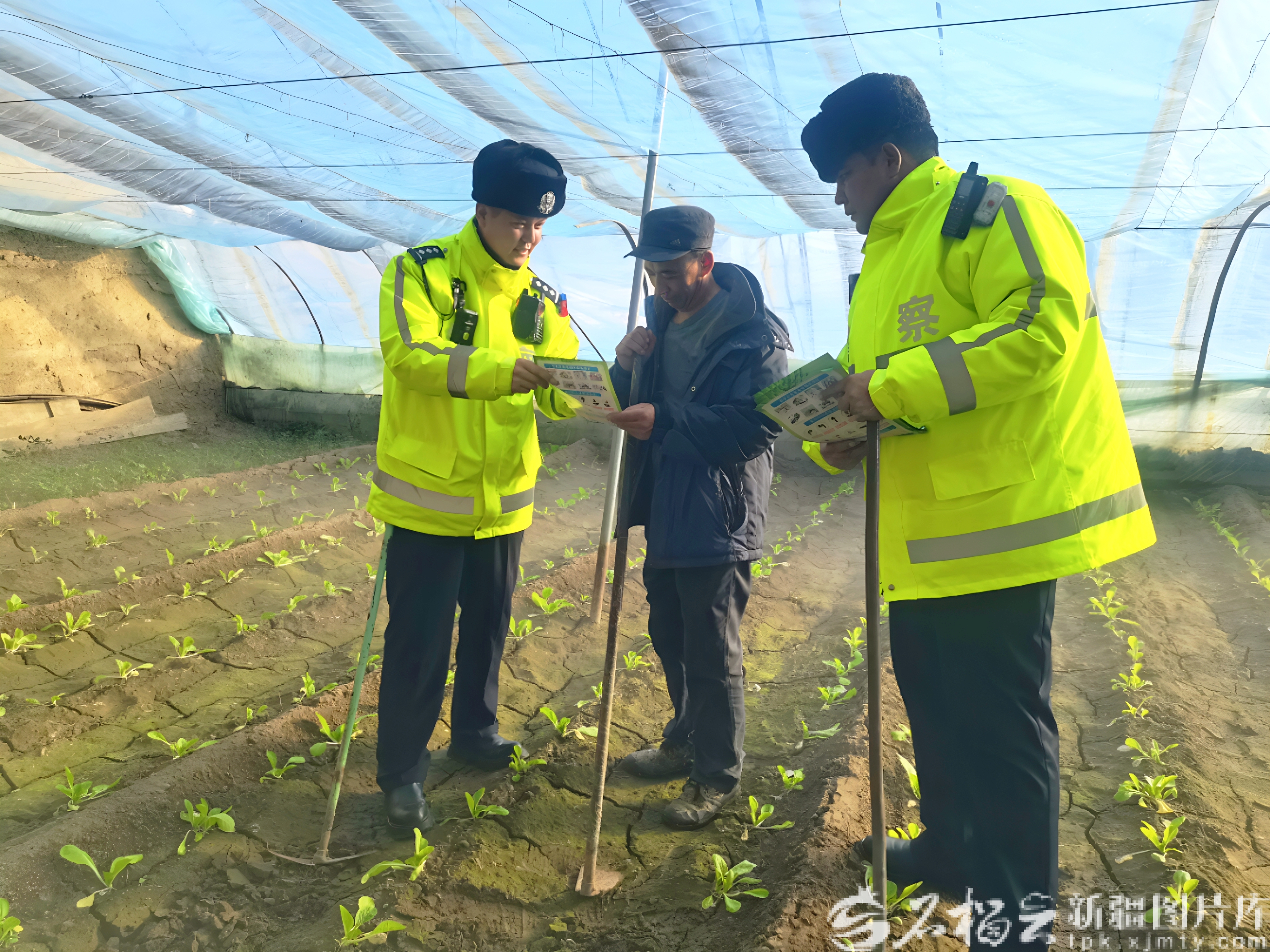 伊宁市潘津镇蔬菜种植基地是辖区重要农业经营主体,也是带动群众增收的特色农业产业,该市公安局潘津镇派出所坚持常态化走访普法。不久前,种植户陈先生收到一条疑似诈骗短信,第一时间联系了派出所。民警马涛立即赶到大棚,一边帮忙栽种辣椒苗,一边细致询问短信内容,帮陈先生规避了被骗风险。