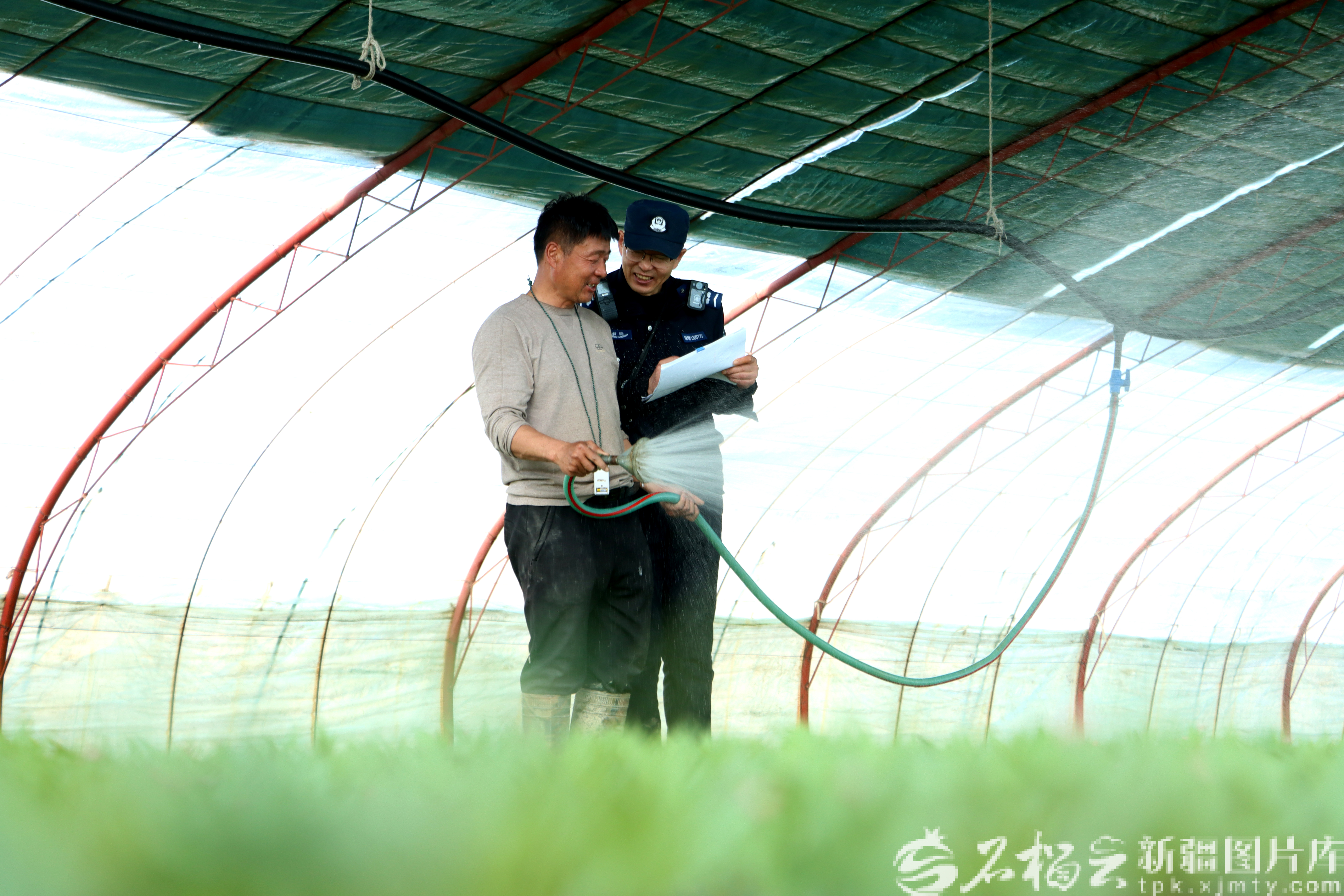 沙湾市育苗大棚内绿意盎然,菜苗吐露新芽。“千万要提防假冒伪劣产品流入,这关系到咱们一年的收成!”在这里,沙湾市公安局民辅警检查与普法同步,一边搭手搬菜苗,一边核对农资销售网点的进货渠道、生产日期和检验报告,现场向农户传授辨别“小妙招”:看包装、查渠道、留票据。