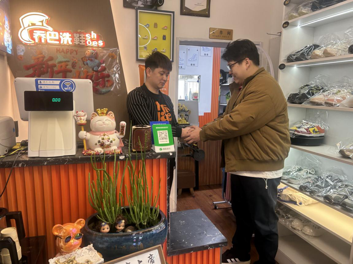 西部计划志愿者、延北街道园丁社区干部王筠烨帮助解决商户各项诉求。张圆圆摄