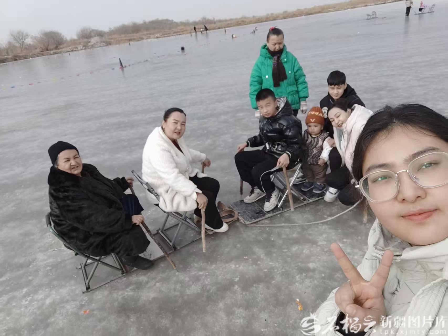 阿依夏木古丽·买提库尔班(左二)和家人们一起带邱硕浩(左三)外出游玩。受访者供图