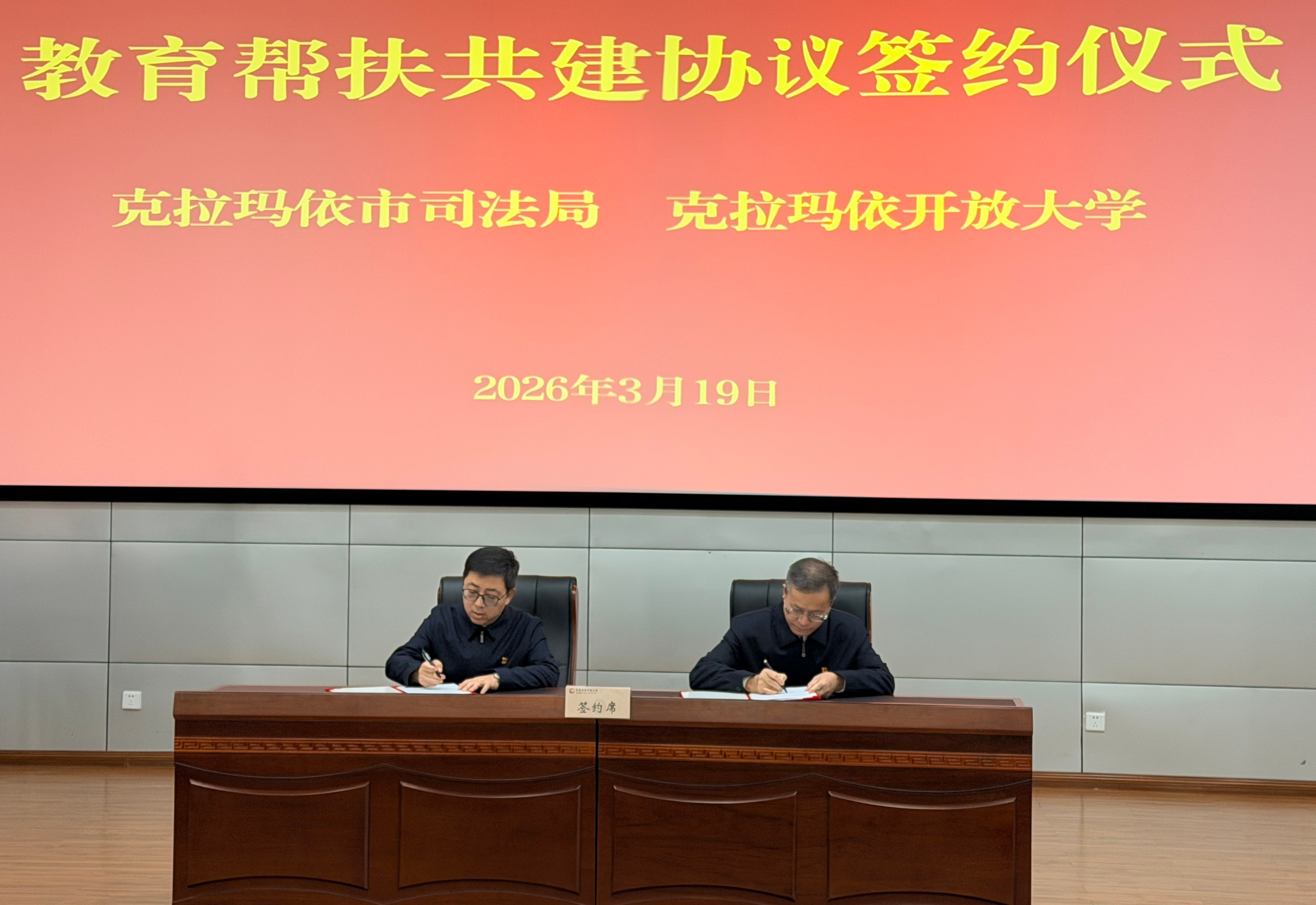 石榴云/新疆法治报讯(记者 郭玉强报道)3月19日,克拉玛依市司法局与克拉玛依开放大学举行教育帮扶共建签约仪式,标志着新疆首个“司法行政+开放教育”协同教育帮扶体系正式落地启动,这一创新举措打破部门资源壁垒,深度融合司法行政与教育领域优势,为当地社区矫正工作提质增效、筑牢基层社会治理防线注入强劲新动能。