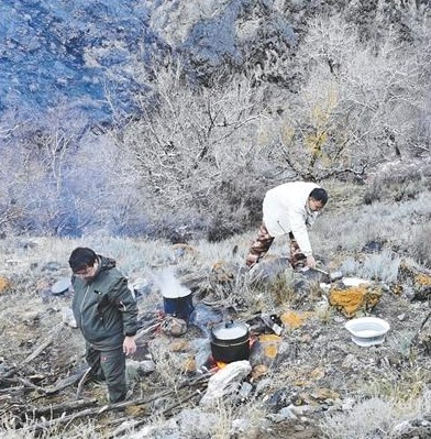 山里的低温不仅人受不了,仪器也受不了。“在‘老虎口’的7天6夜,测绘仪都被冻得无法工作了,我们把仪器抱在怀里让它回温后再进行测绘。地面冻得硬邦邦,数据基准点都得用冰镐凿。”公维强说。