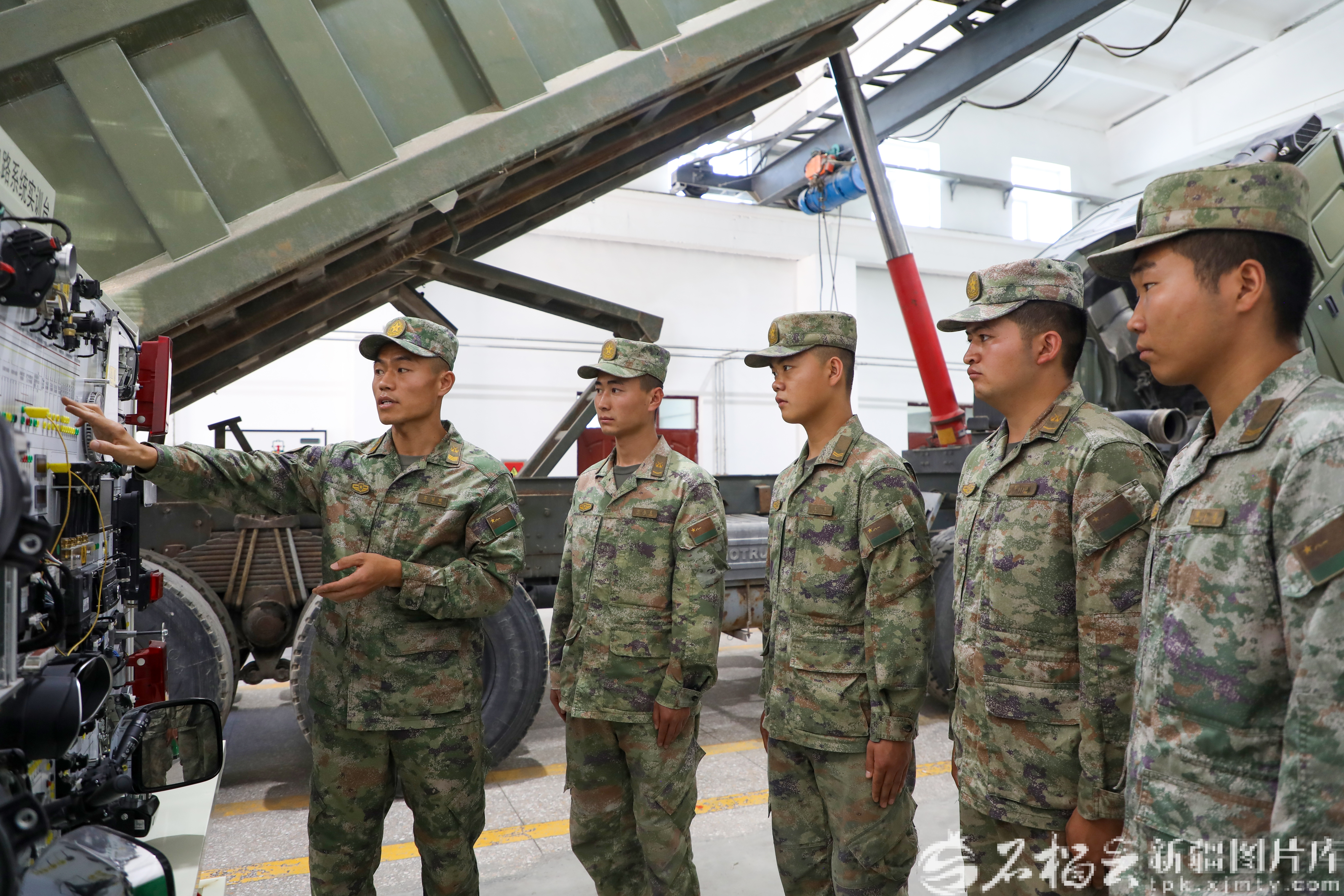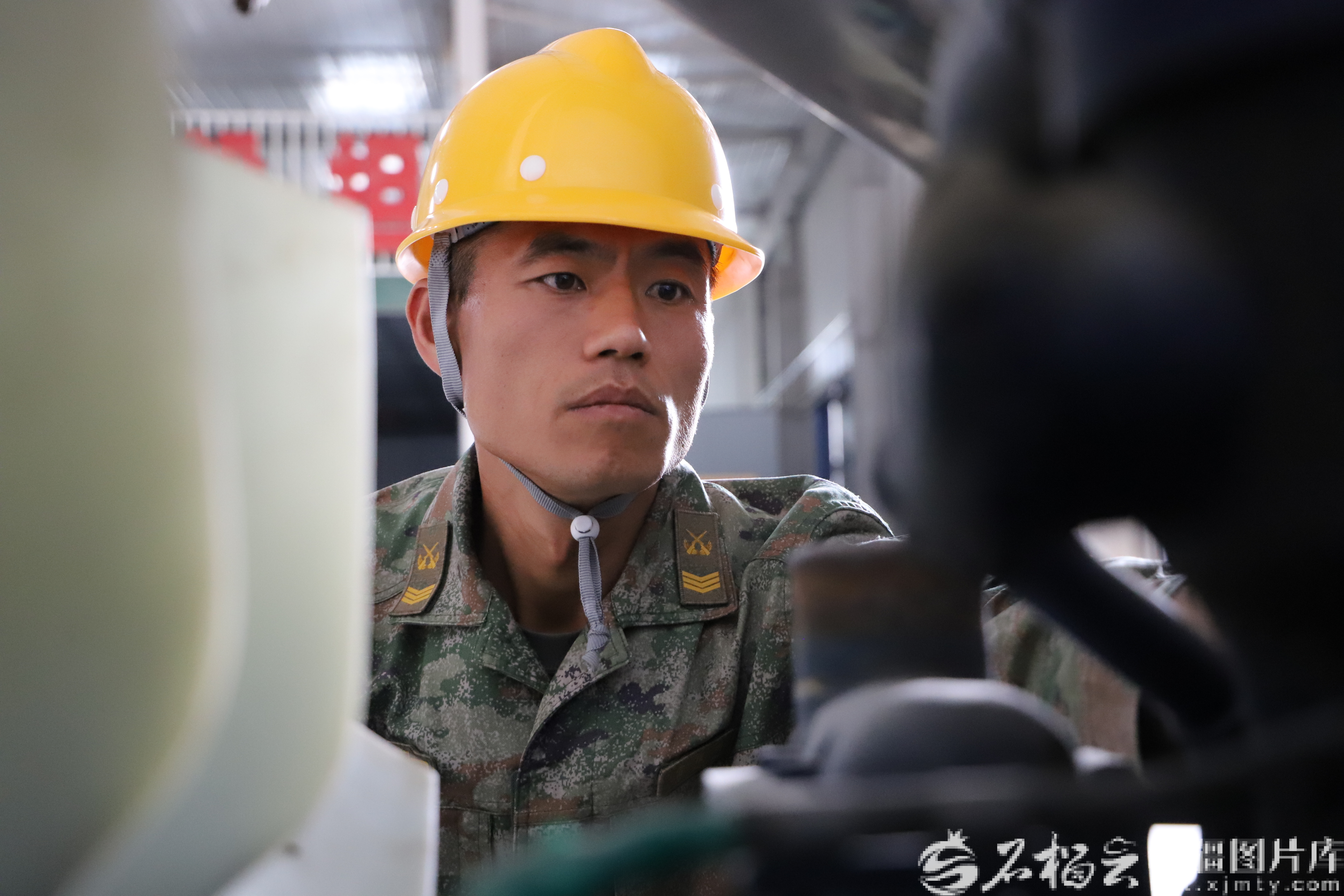 图为雷耀明(右)正在和战友查找机械故障。张翔摄
