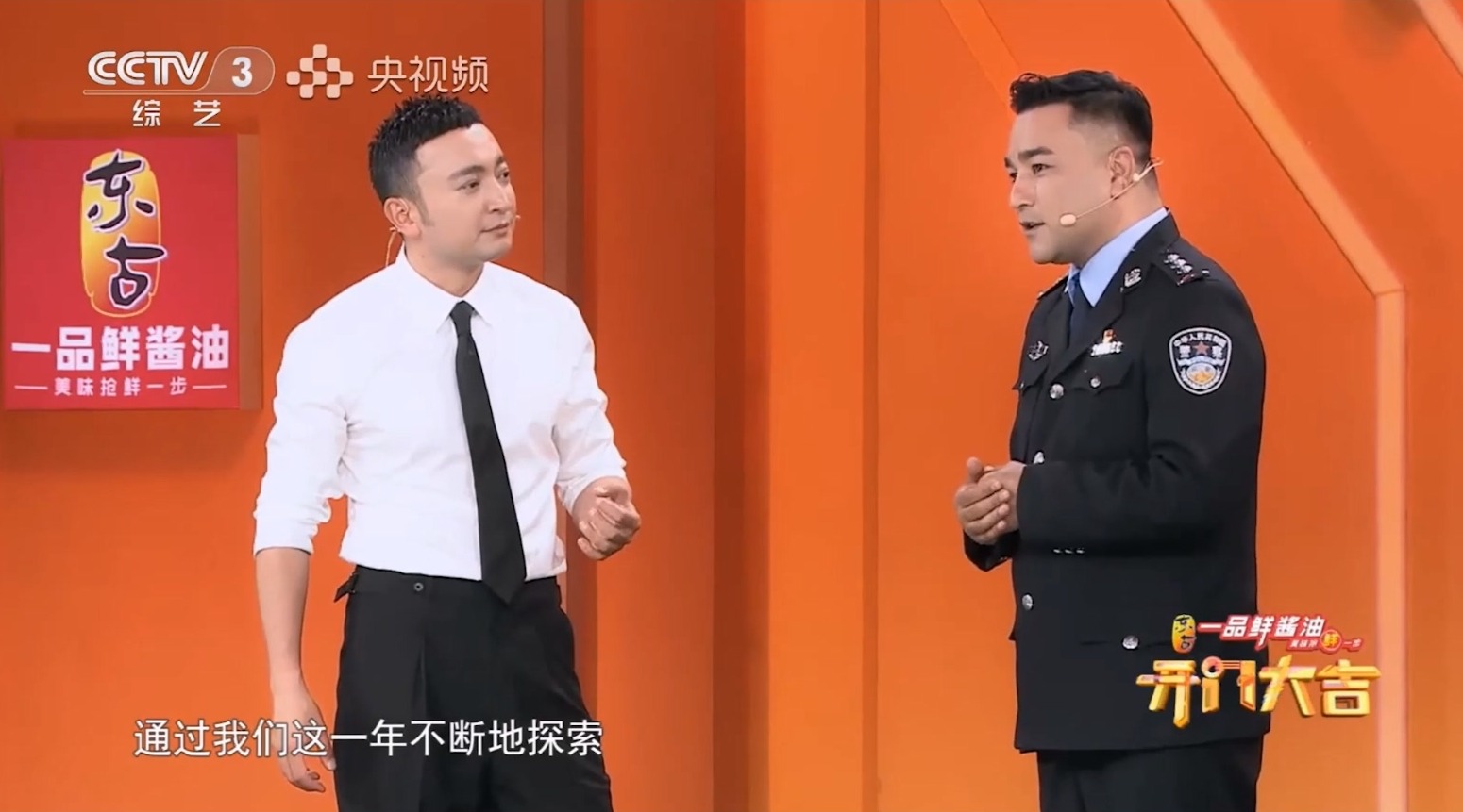 2025年4月,“馕警官”受邀登上中央电视台《开门大吉》节目,与主持人分享基层警务故事。乌苏市公安局供图