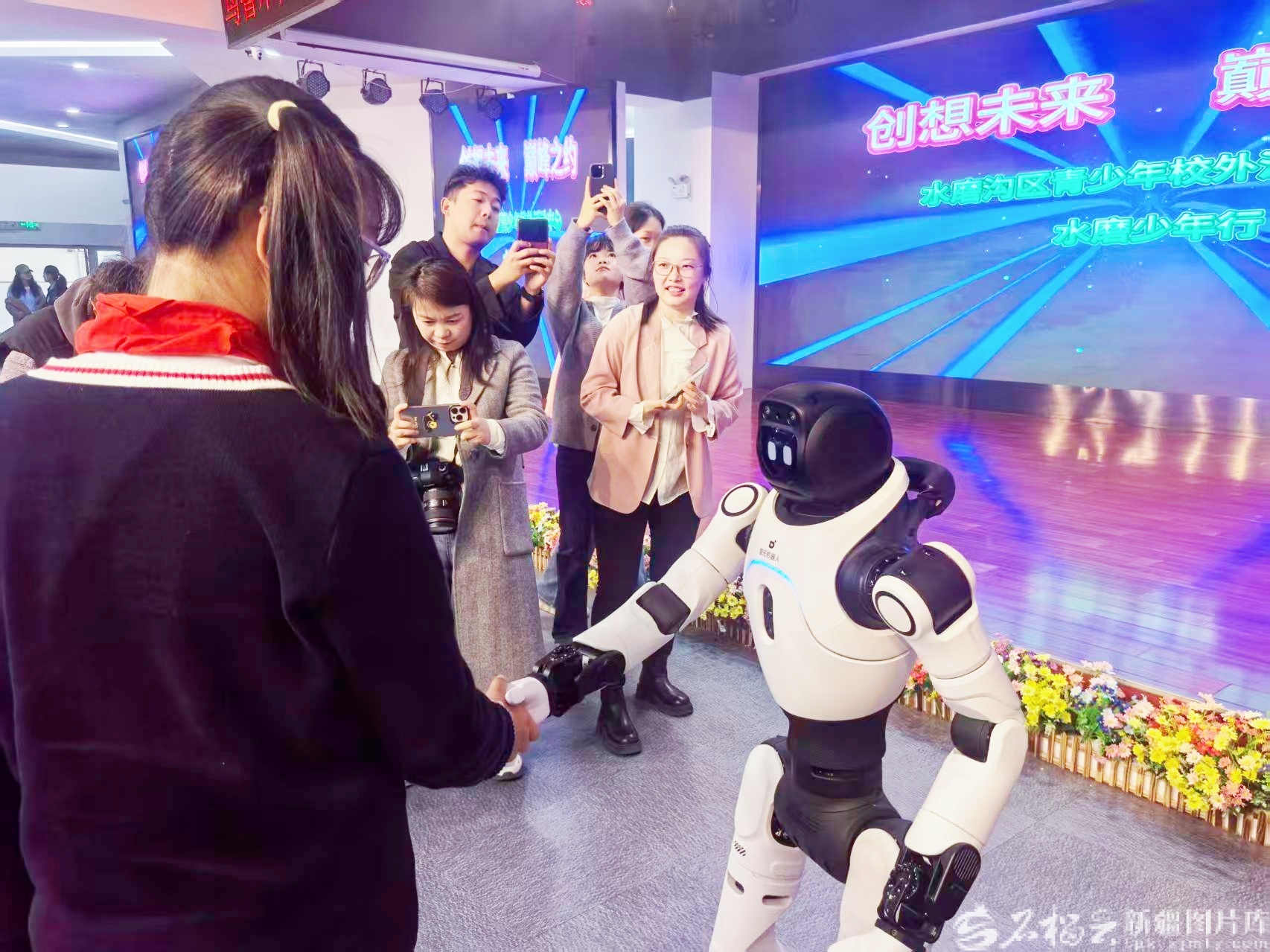 灵犀机器人与孩子们现场互动。