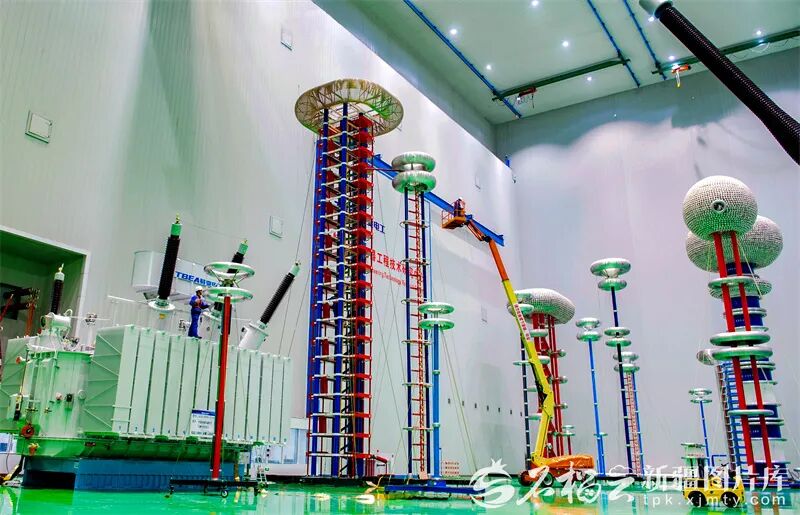 半个多世纪后,在特变电工新疆输变电科技产业园,研发人员对组装完成的特高压变压器进行严格试验。