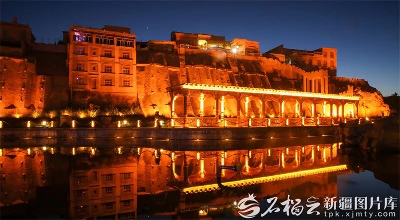 如今的喀什古城,日夜皆景、生机盎然:街巷整洁有序,民居错落有致,游人漫步其间,感受浓郁民俗风情;夜幕降临,暖灯点亮纵横街巷,夜间演艺精彩纷呈,文创商铺灯火璀璨,汗巴扎的烟火气在光影间缓缓流淌。
