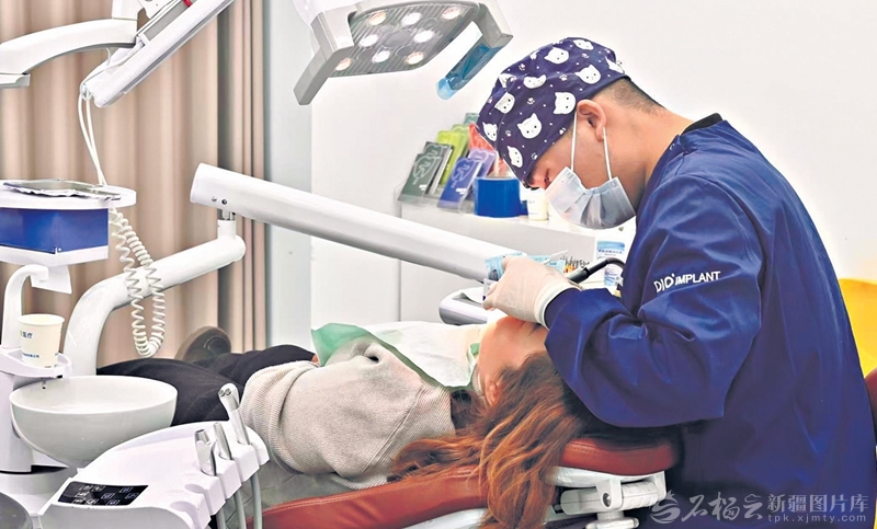 4月10日,在喀什天牙口腔门诊,“新疆福康保”参保人在享受免费洗牙服务。董荣摄