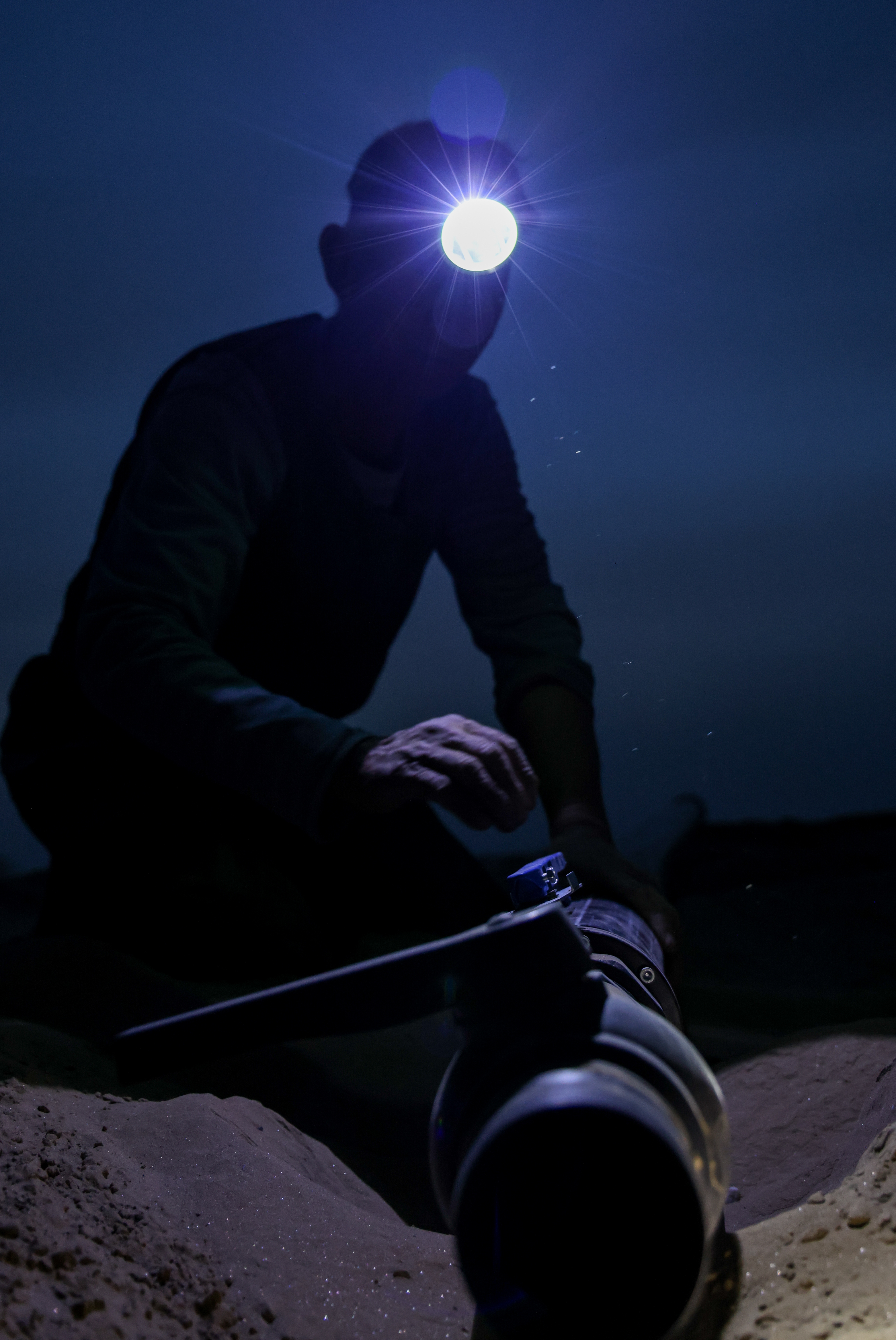 图尔洪在夜色中铺设管道。 许晓龙 摄