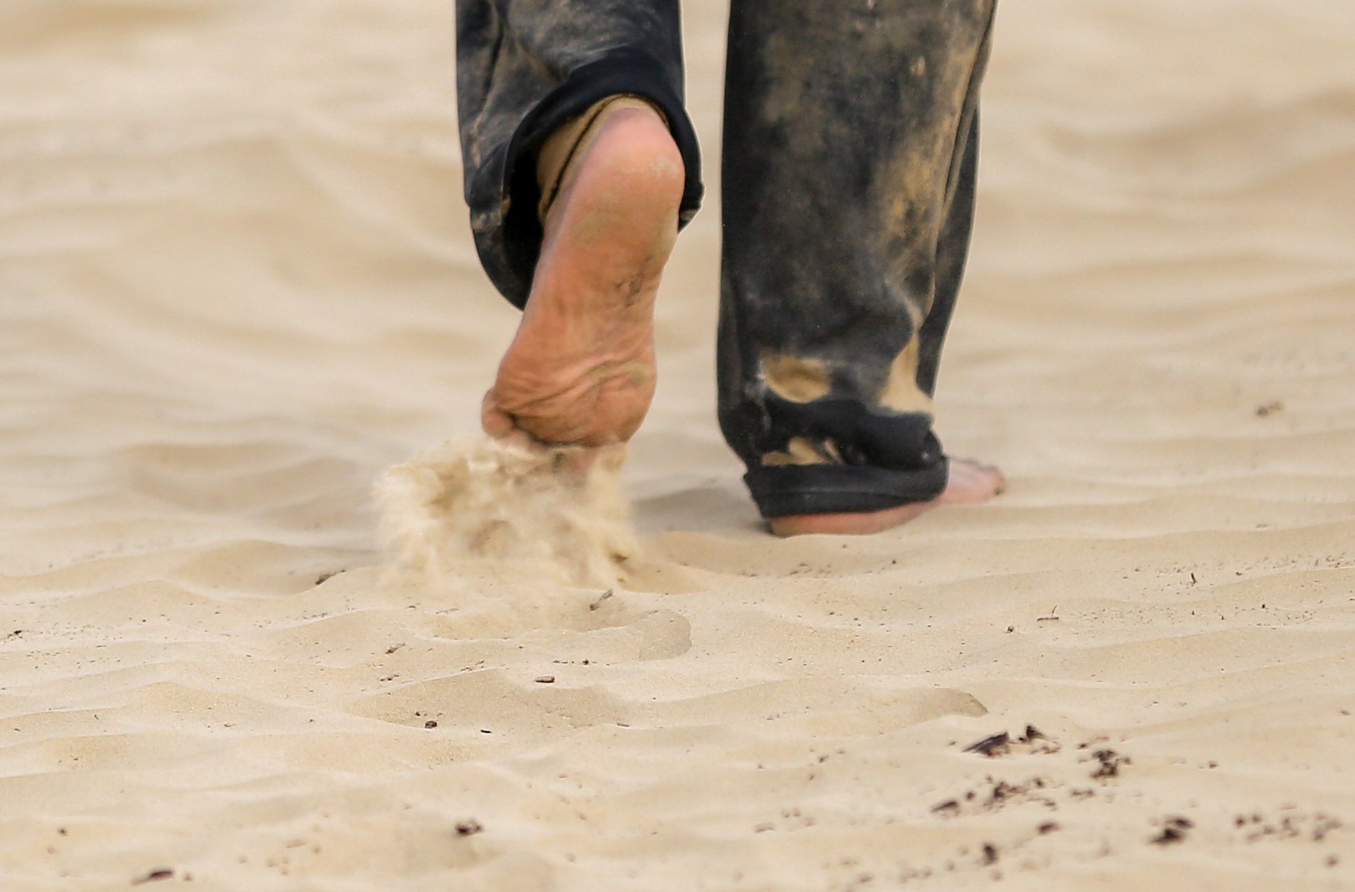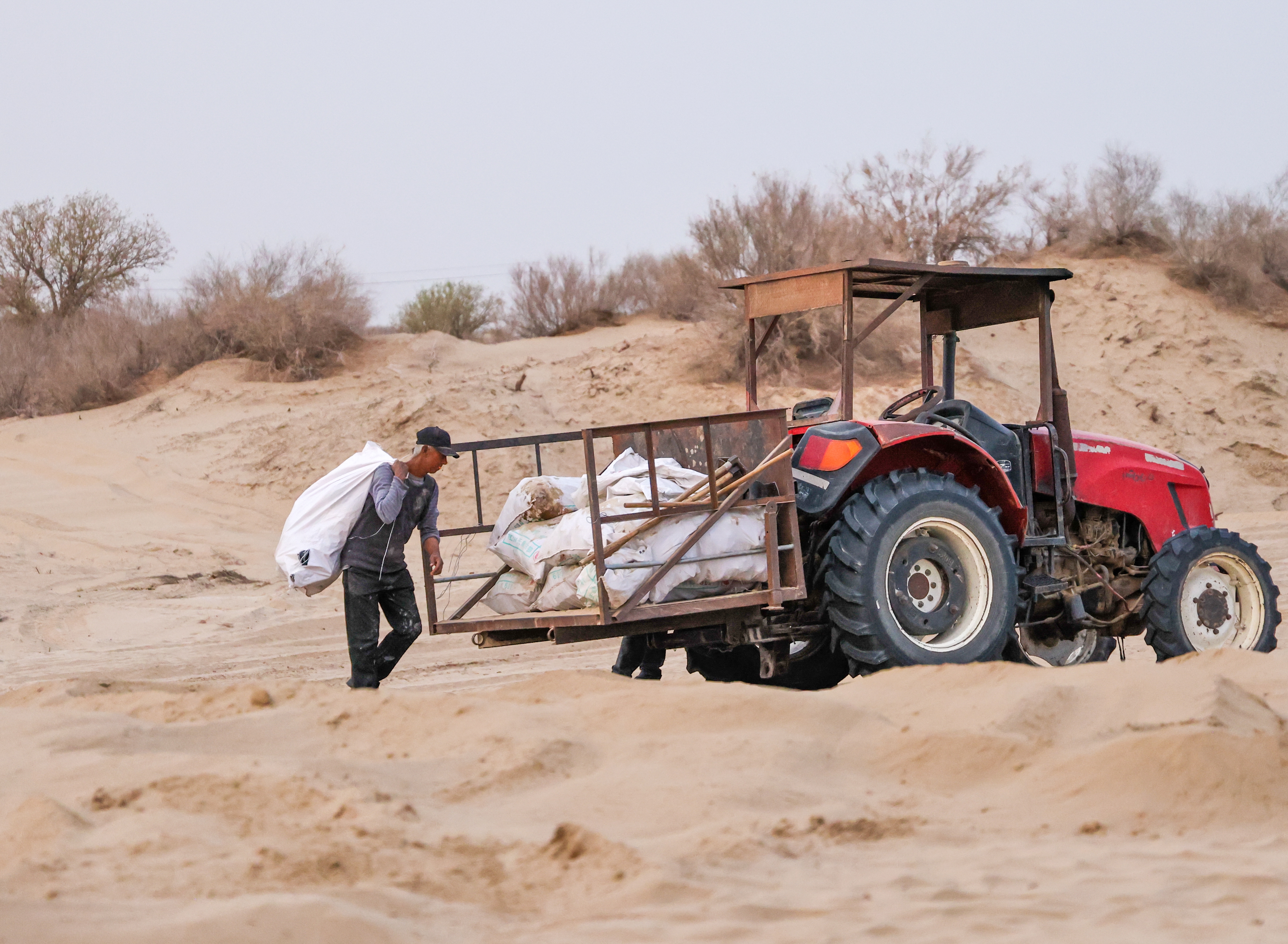 图尔洪踩着沙子往前走,指着远处的黑影:“两年前,最远的地离家15公里;现在,离家已经20公里了。”