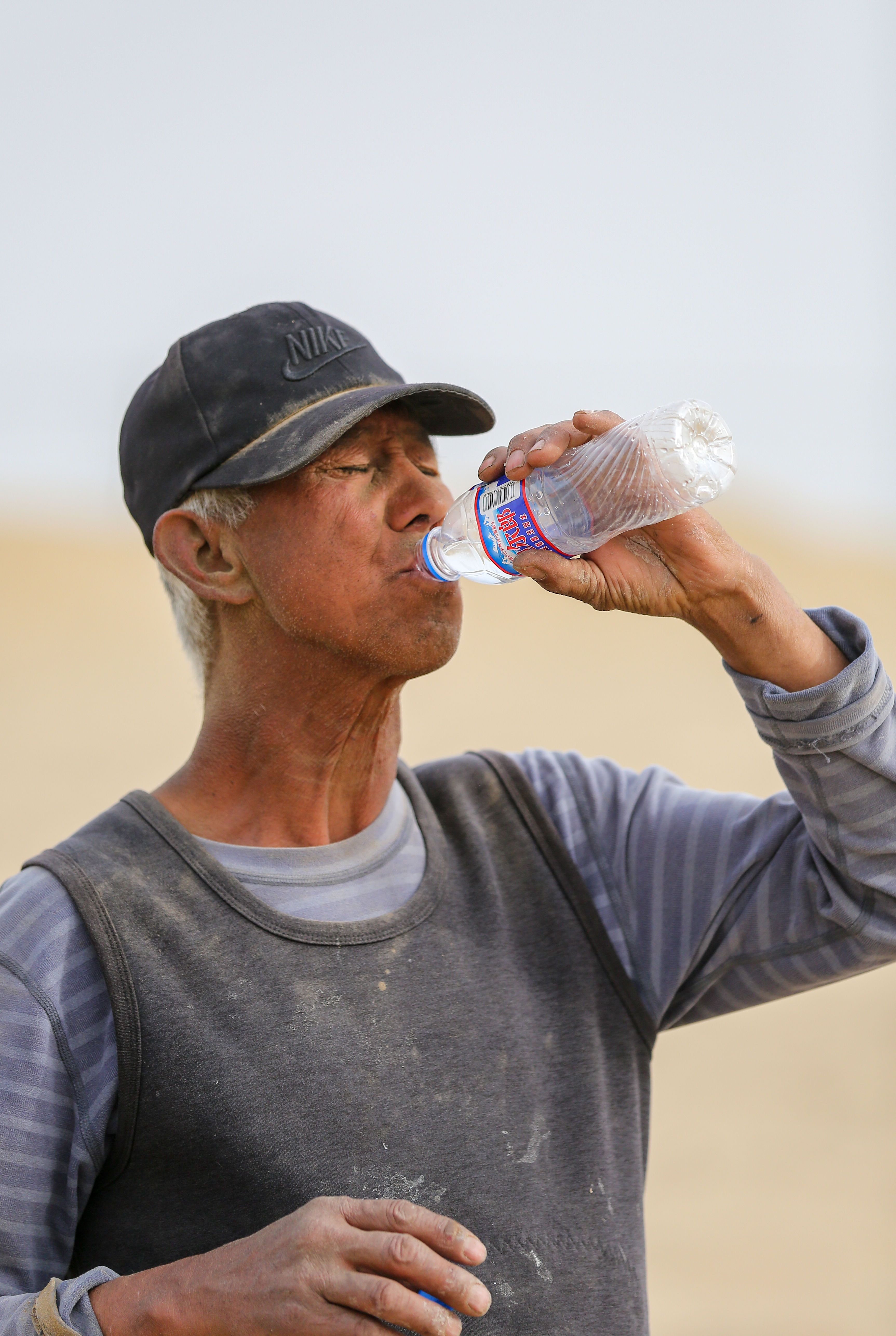 图尔洪脸上皱纹里藏满了砂砾。 许晓龙 摄
