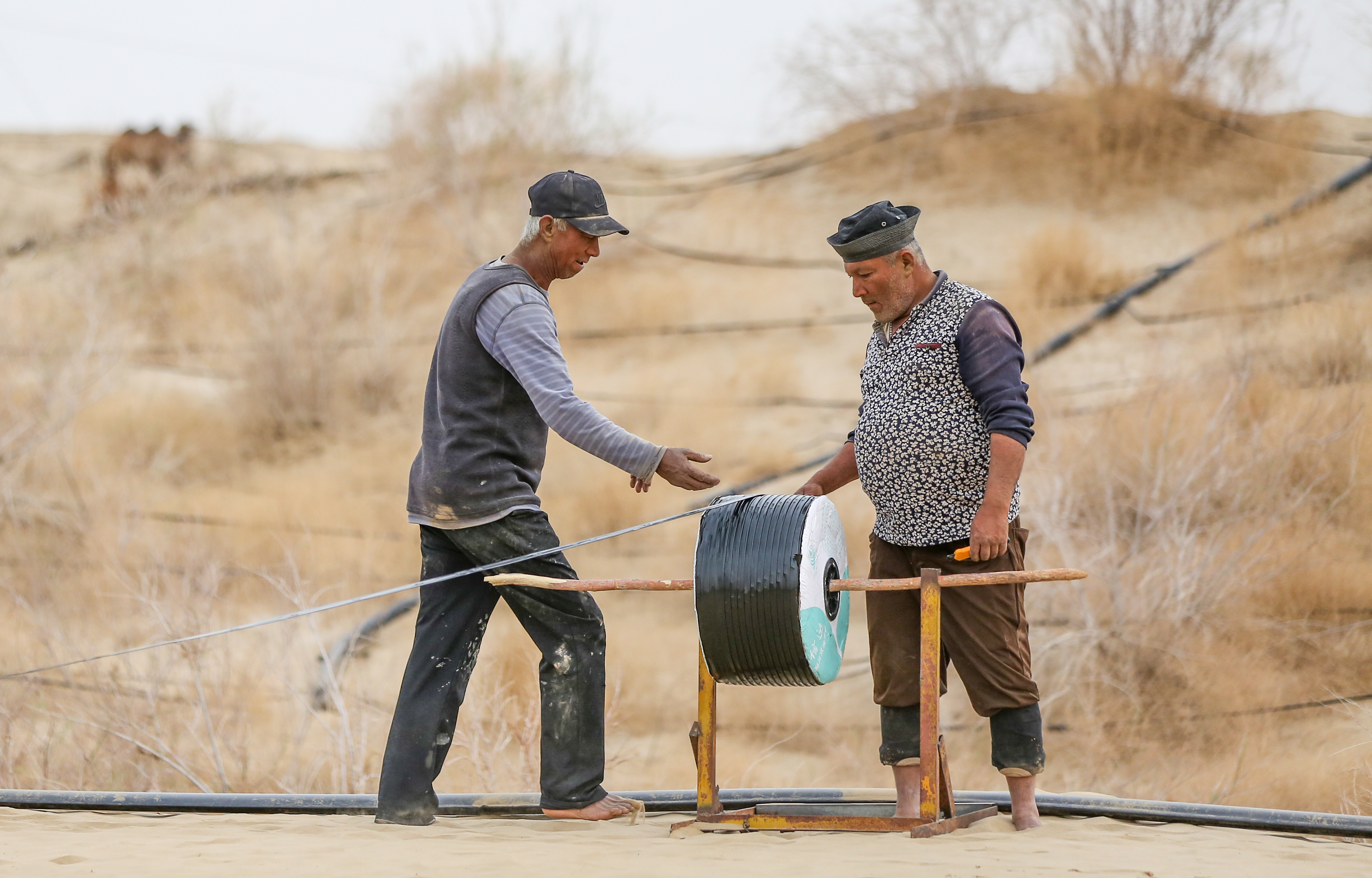 夜色渐深,沙漠里的劳作还在继续。图尔洪的身影在微弱的光线中格外坚定。