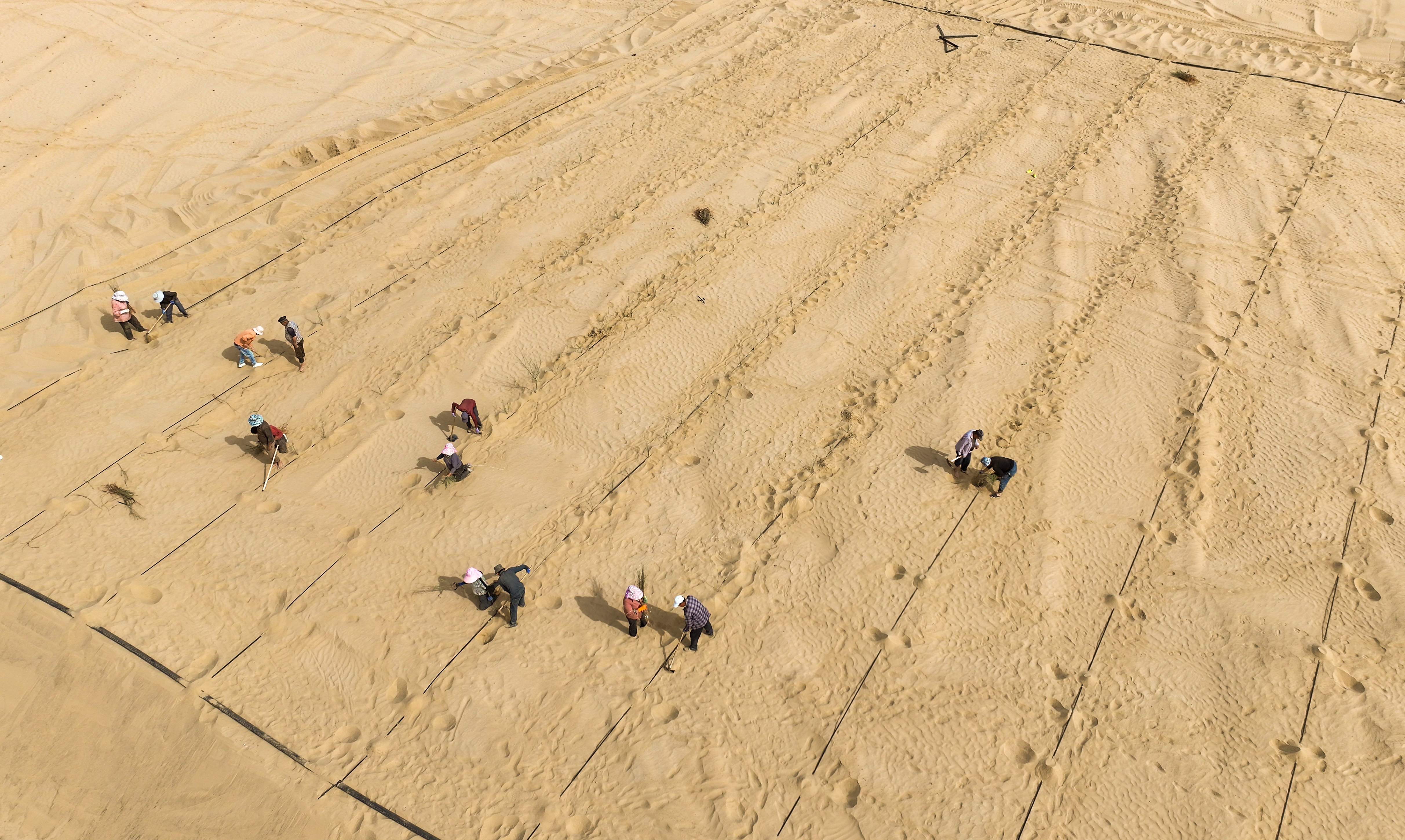 “沙漠种树,抢的是时间,早一天栽,早一天活,早一天固沙。”图尔洪边说边干没有丝毫停歇。