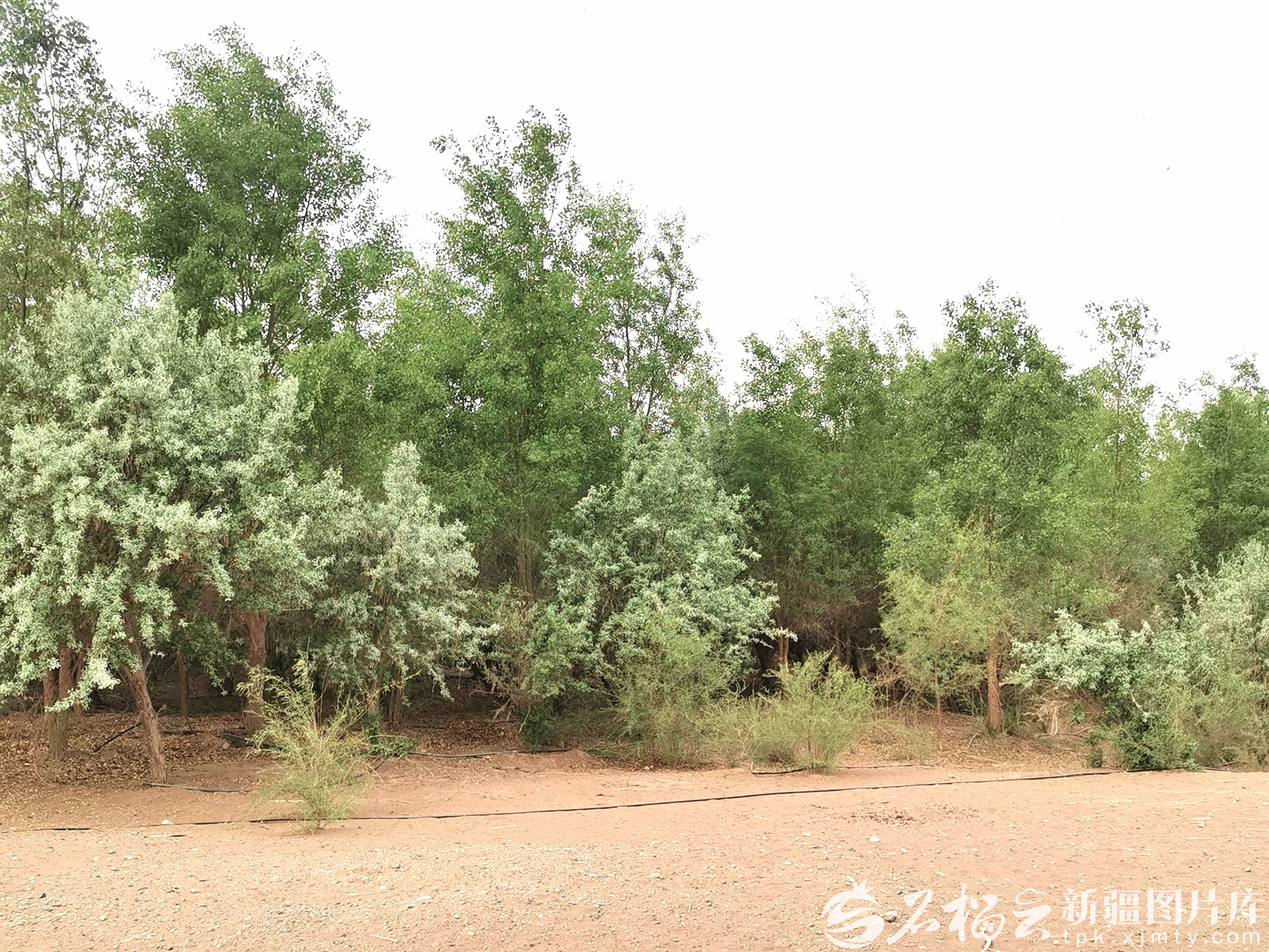 4月17日,莎车县中水库生态林基地郁郁葱葱的树木。石榴云/新疆日报记者 曹华摄